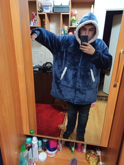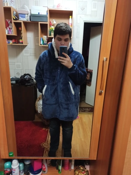 Прикольное худи, мягкое и уютное. Брала на молнии. На фото кажется толще, но, в принципе, фото соответствует. Заявленному размеру тоже соответствует. На рост 1,62м - сантиметров на 15~20 ниже пятой точки, при ОГ 135см свободненько так, нигде не жмёт)). Качество не супер-пупер, но приемлемое ~ 7,5 из 10: кое-где торчат нитки и внутренний "мех" надо вручную почистить от ниток и мелкого тканевого "мусора". Внутренний "мех" очень уютный. Заказ сделала 18.11.2020г, продавец отправил быстро. доставить должны были 26.12.2020г, а пришло 21.01.2021. по отслеживанию проболталось целый месяц на пункте "международная перевозка", уже переживала, но всё обошлось)) Продавец положил в подарок браслетик, спасибо:) Продавца и товар рекомендую.