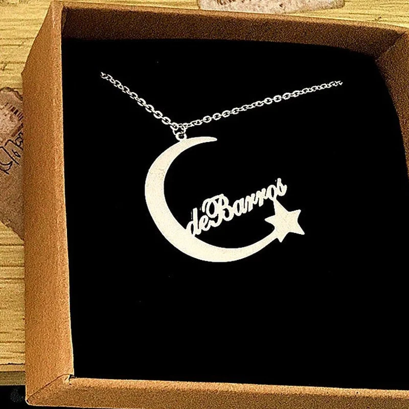 Ожерелье с именами на заказ, колье, персонализированное, полумесяц и звезда, именная табличка, Ожерелье Bijoux Femme, нержавеющая сталь, романтичное, подарок