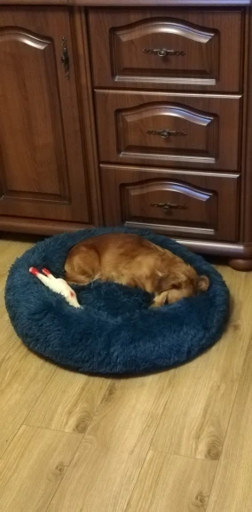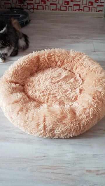 Очень пушистая лежанка. Приятная. Сначала хотела брать больше, но для котёнка 3 кг норм. Он любит спать, вытянувшись во весь рост. На первый взгляд сделано качественно. Ничего лишнего не торчит. Форму держит. Одна проблема - кот. Он наотрез отказался подходить к лежанке ) обходит её стороной. Через несколько дней время от времени покусывает сбоку, но залезать пока отказывается. Надеюсь, всё же привыкнет.