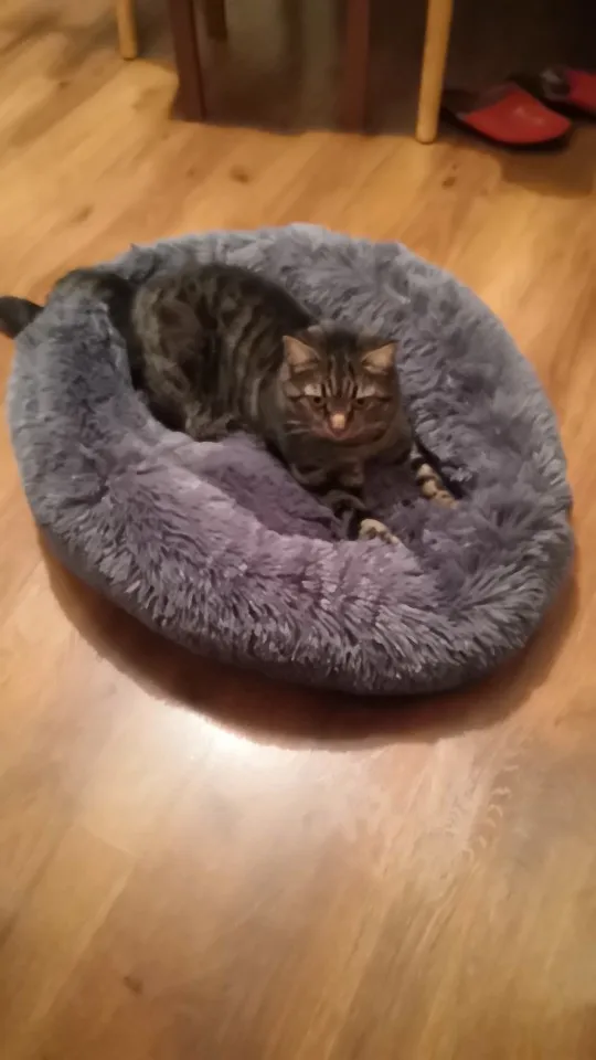 Наш кот полностью проигнорировал. Наверное, из за запаха.. может постоит - пройдет.. Так красивая лежанка. Но котам важно , чтоб натурально и пахло привычно. Так и спит в коробке картонной.