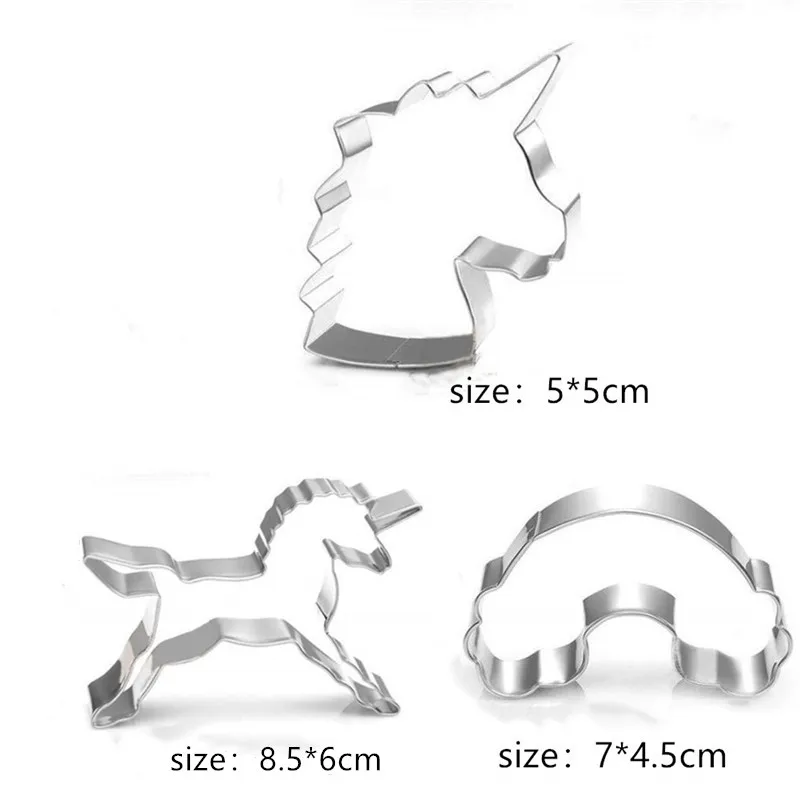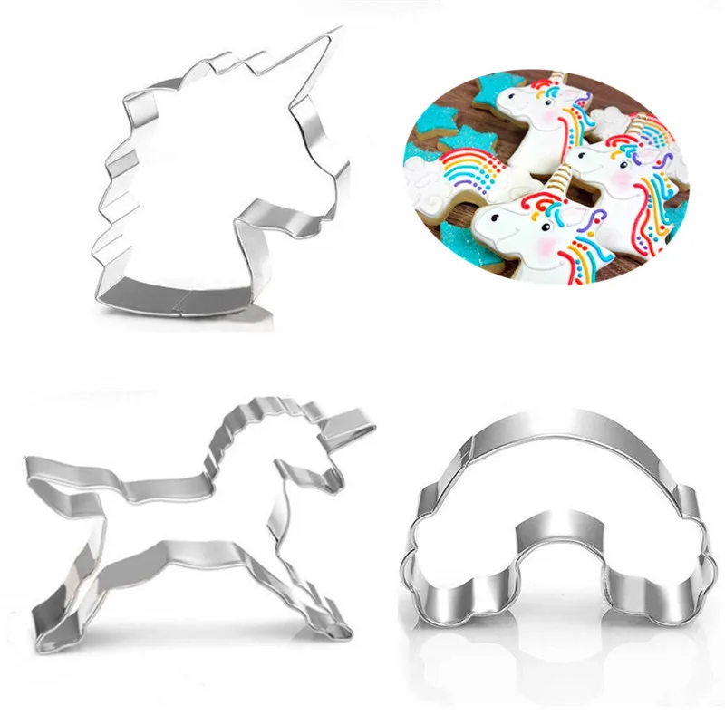 3 шт., формочки для печенья из нержавеющей стали, единорог, резак для помадки, штампы для печенья, форма для выпечки, форма для печенья, инструменты для украшения торта