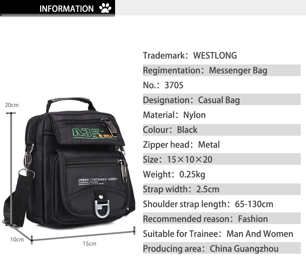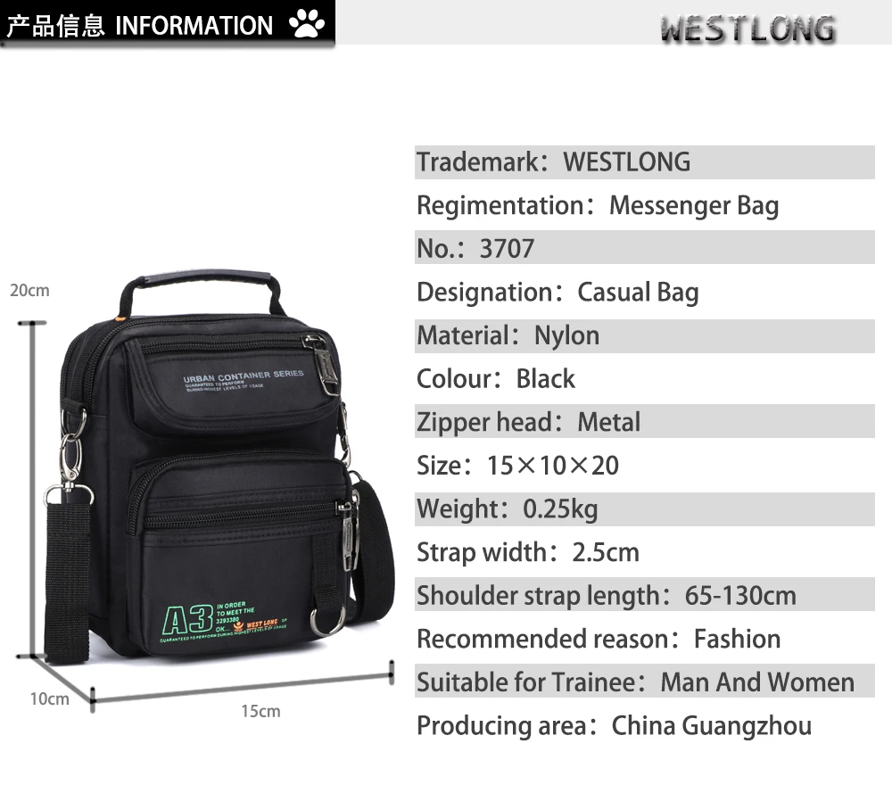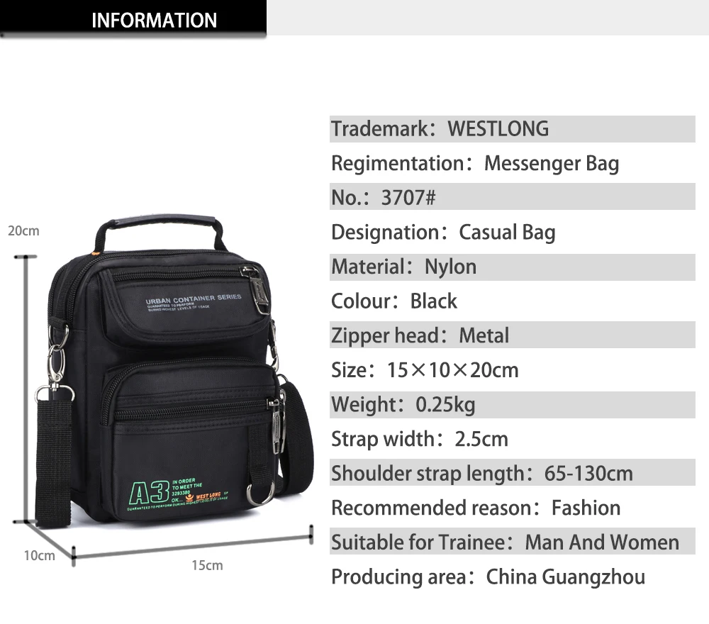 Сумка-мессенджер Мужская, многофункциональная, водонепроницаемая, 3707