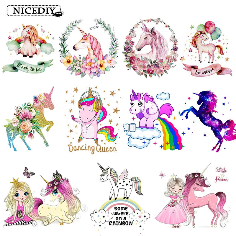 Nicediy Единорог Железный На мультфильм милый патч тепло винил переводит Радуга термальная наклейка на одежду DIY для детей футболка аппликация