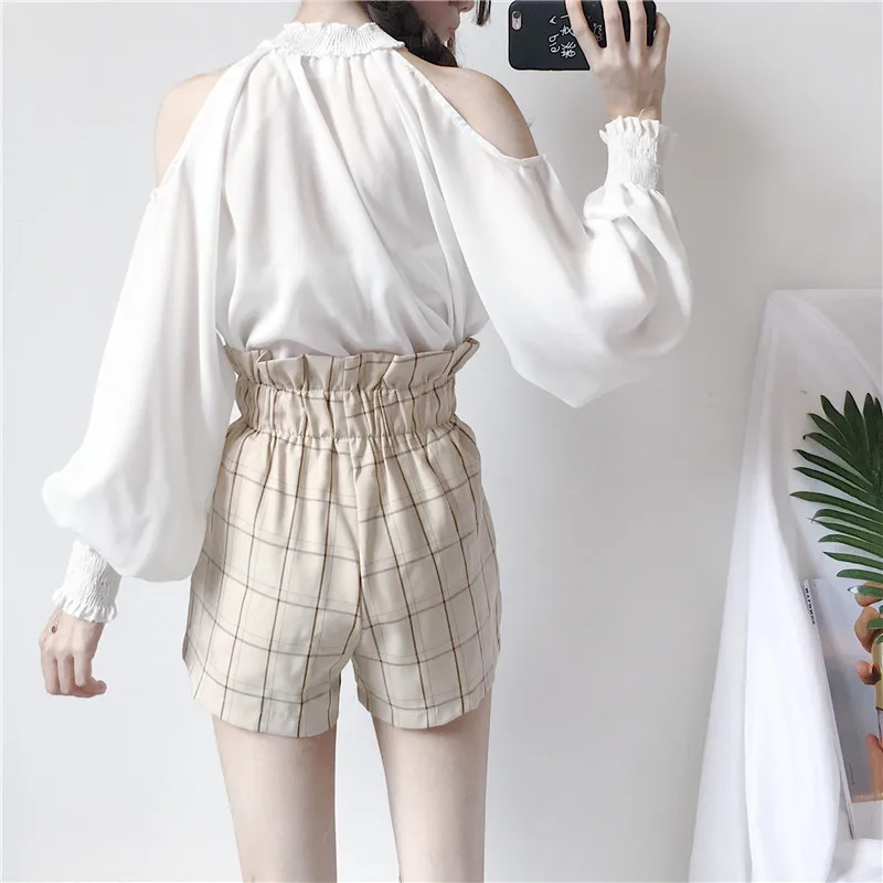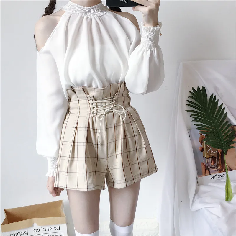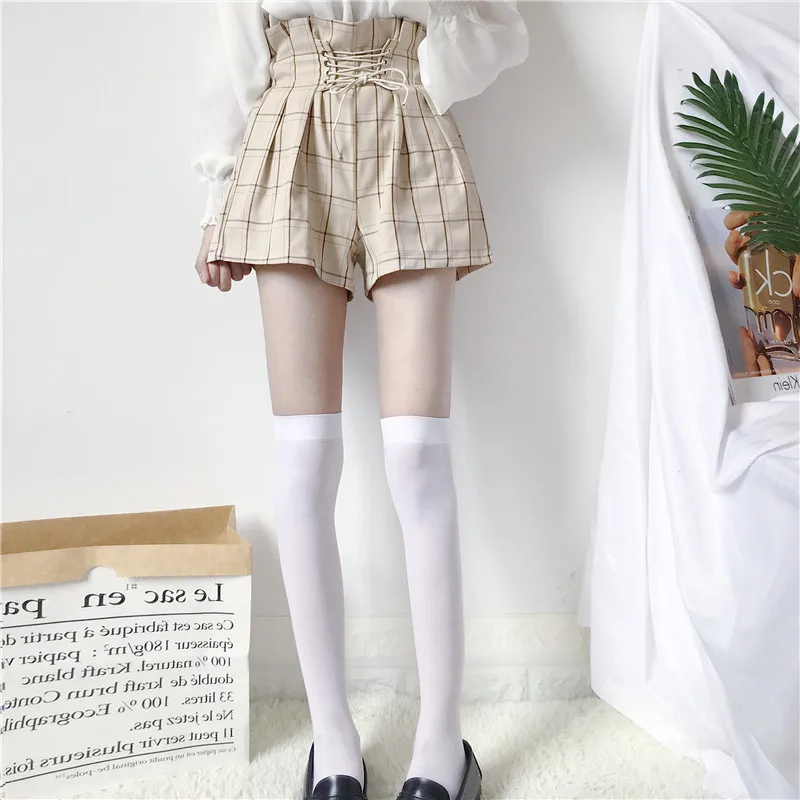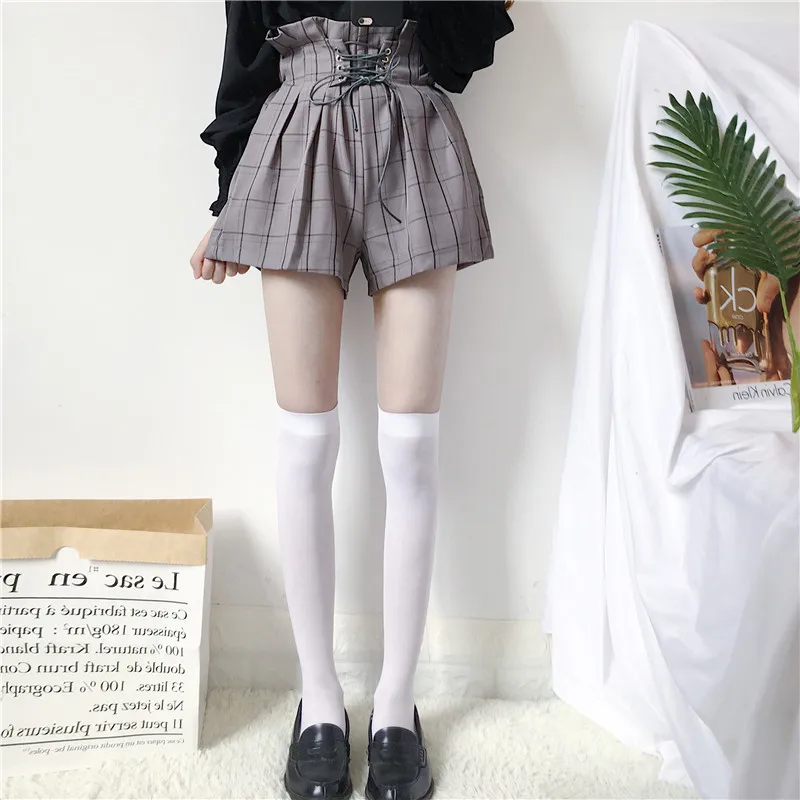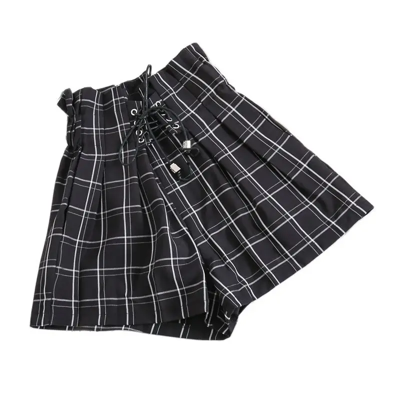 HELIAR 2022 весенние женские клетчатые шорты с эластичной резинкой на талии, широкие шорты с завязками, женские шорты с высокой талией