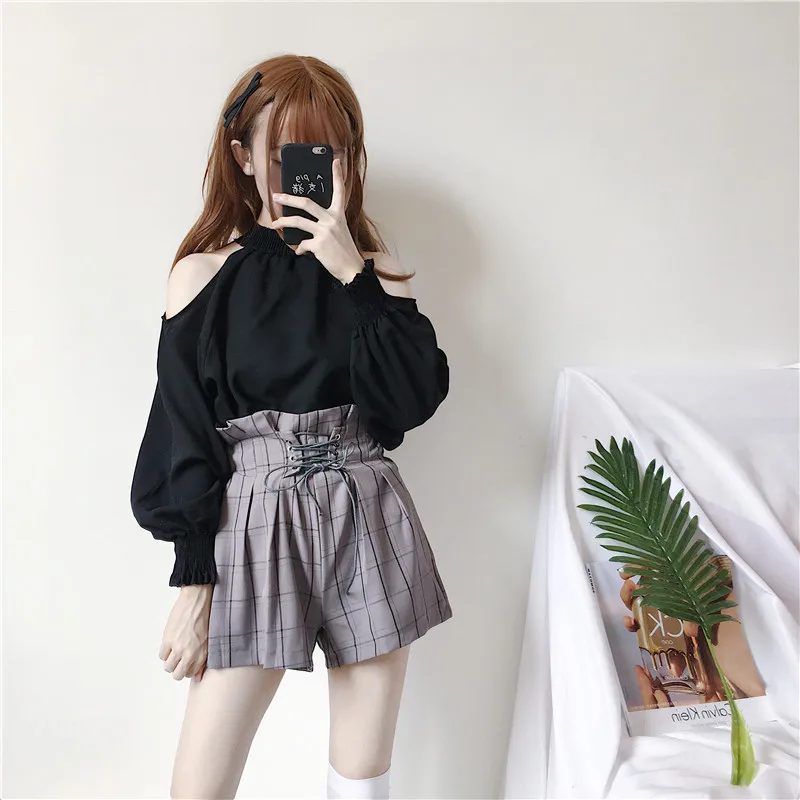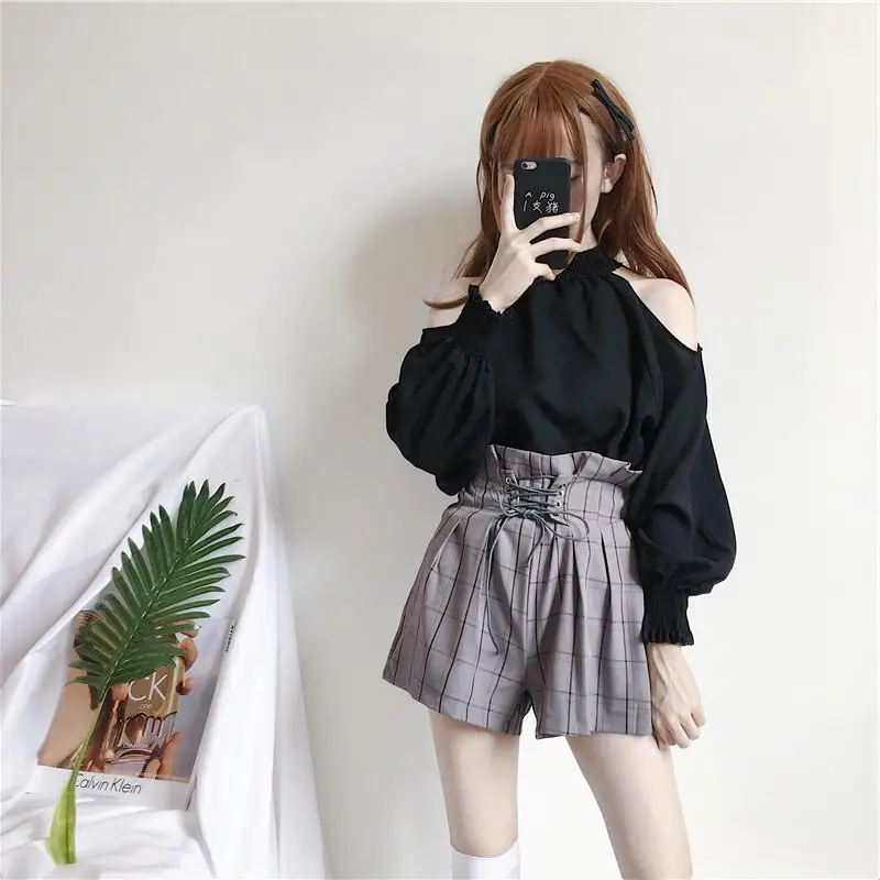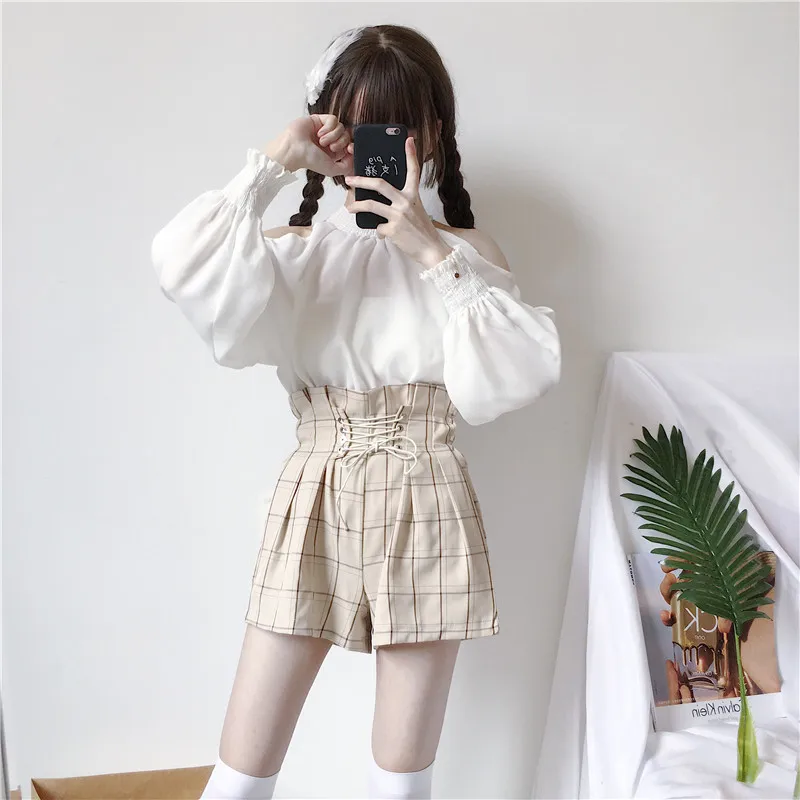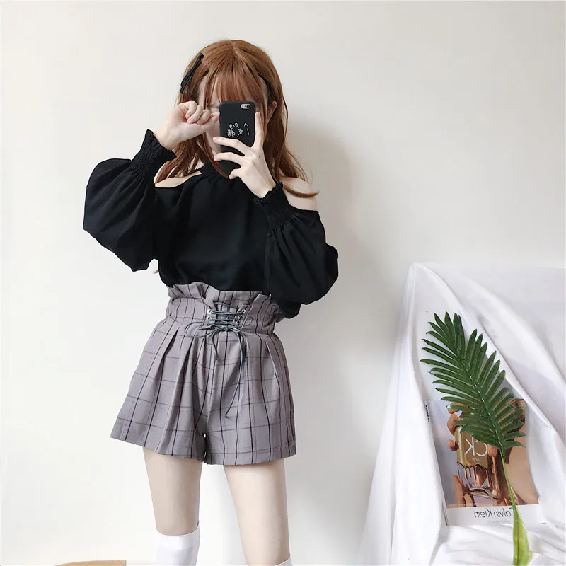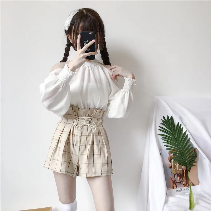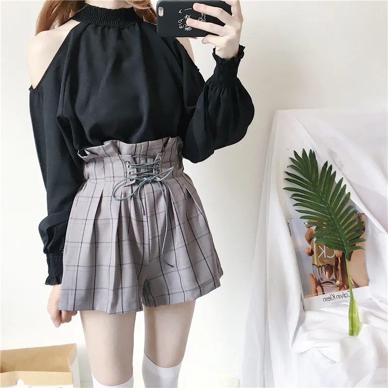 HELIAR 2022 весенние женские клетчатые шорты с эластичной резинкой на талии, широкие шорты с завязками, женские шорты с высокой талией