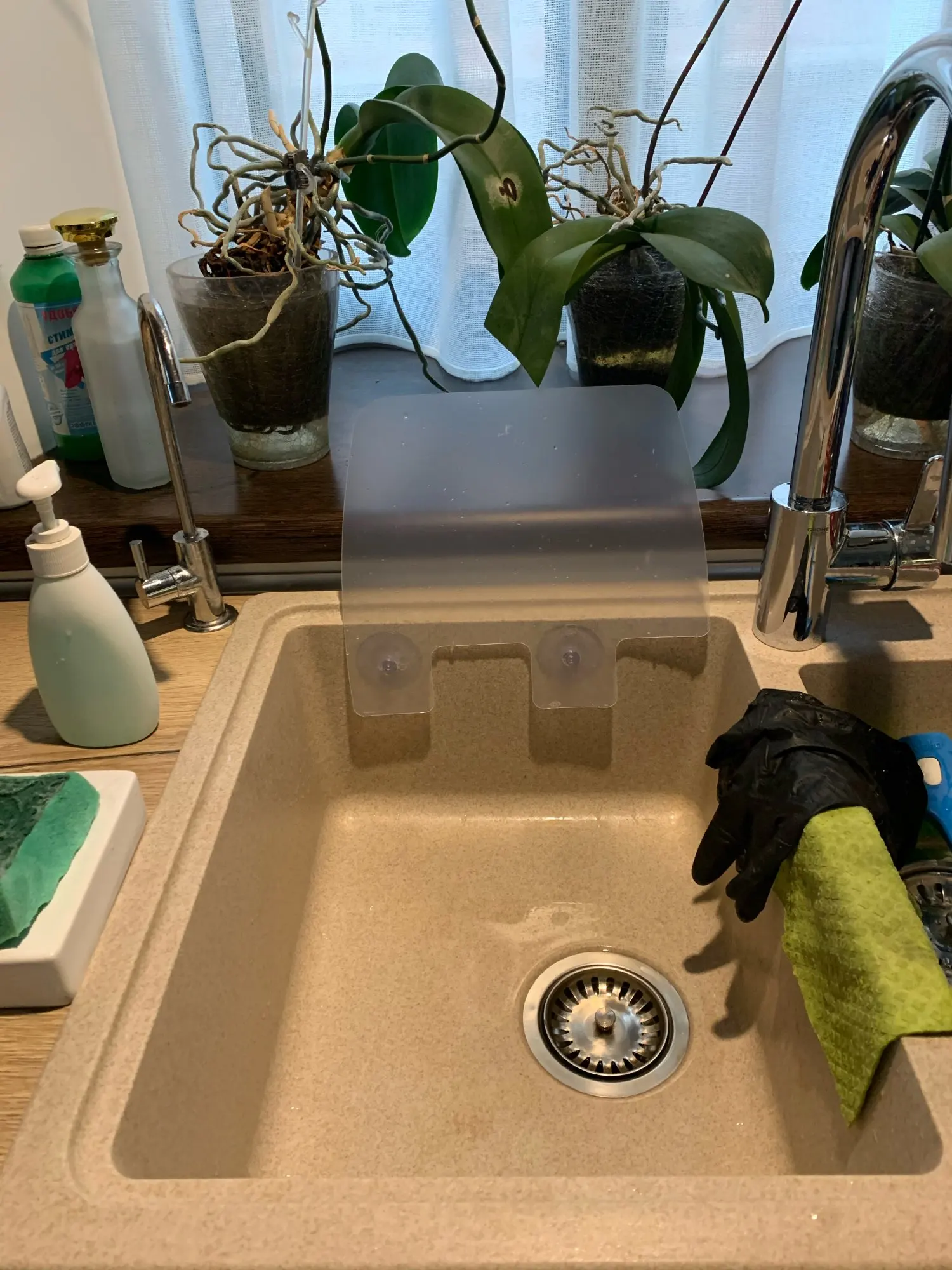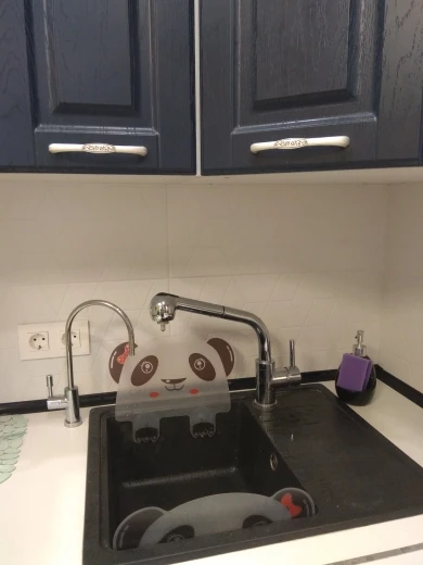 Классная вещь. Но, к моему сожалению, липнет только к металлической мойке. К мойке из композитных материалов не прилипает