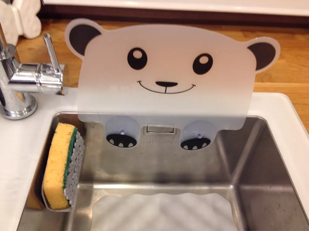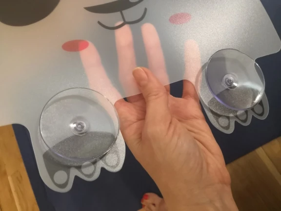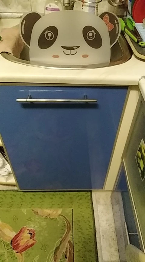 Не уверена, что эта штука будет хорошо держаться, еле приклеила ее на мыльный раствор, попробовала помыть посуду, пока со своей задачей справилась. Очень огорчило, что в процессе транспортировки немного замялось и теперь есть белые заломы, видны на фото((((
