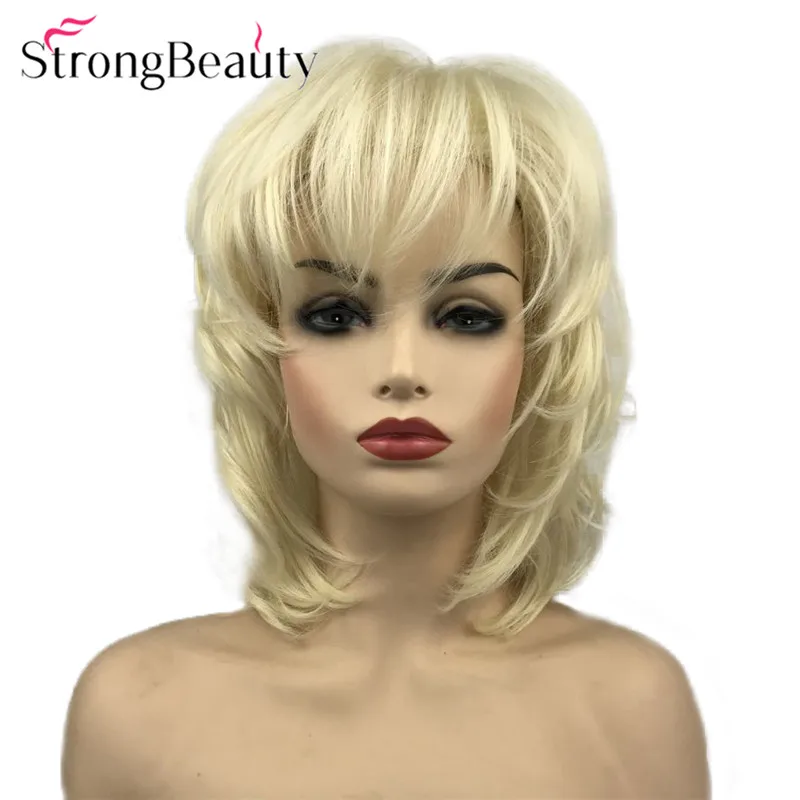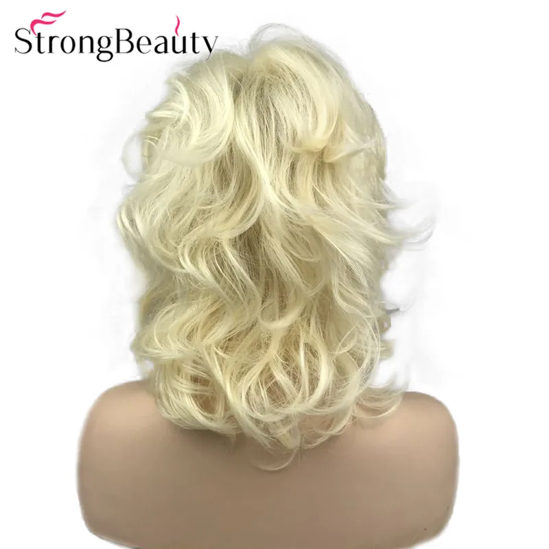 StrongBeauty синтетические женские парики пушистые натуральные средние волнистые светлые/золотистые волосы монолитный парик