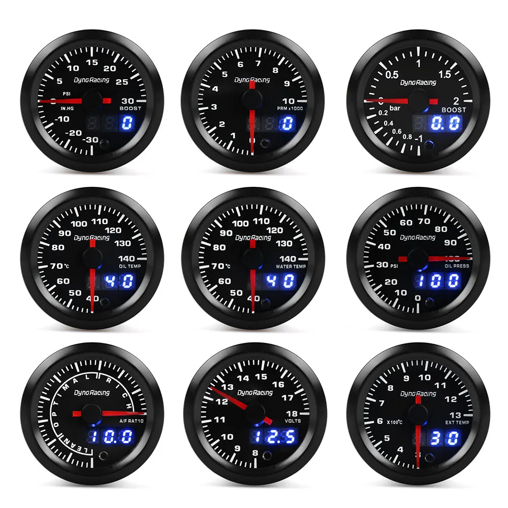 2 дюйма 52 мм 7 цветов светодиодный двойной дисплей датчик повышения температуры воды, температуры масла вольтметр давления соотношение воздуха и топлива EGT Тахометр Автомобильный датчик