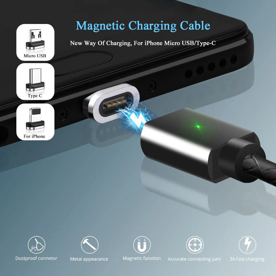 Магнитный зарядный кабель USB Type-C Micro USB, провод для быстрой зарядки и передачи данных для iPhone, Samsung, Huawei, xiaomi, redmi note 7, магнитное зарядное устройство