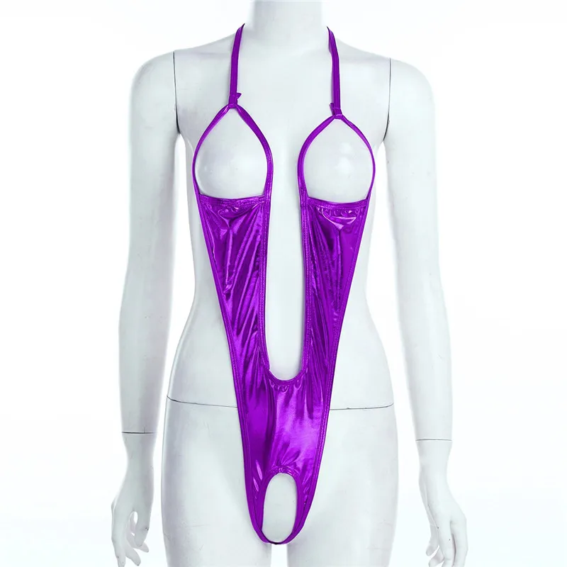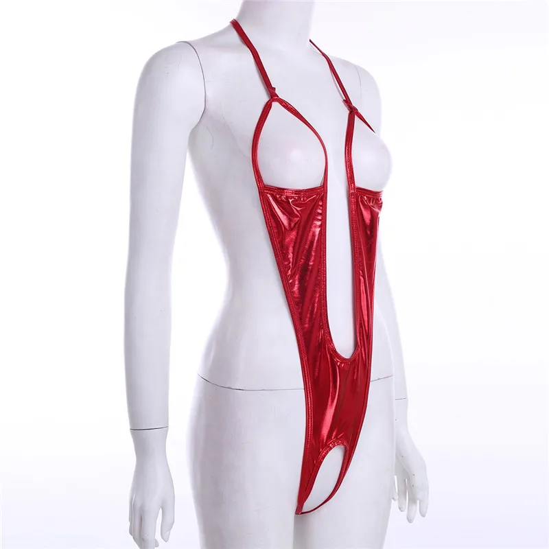 Женский слитный купальник TiaoBug из лакированной кожи, с открытой грудью и открытой спиной