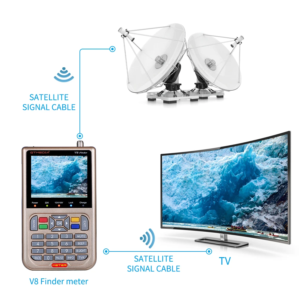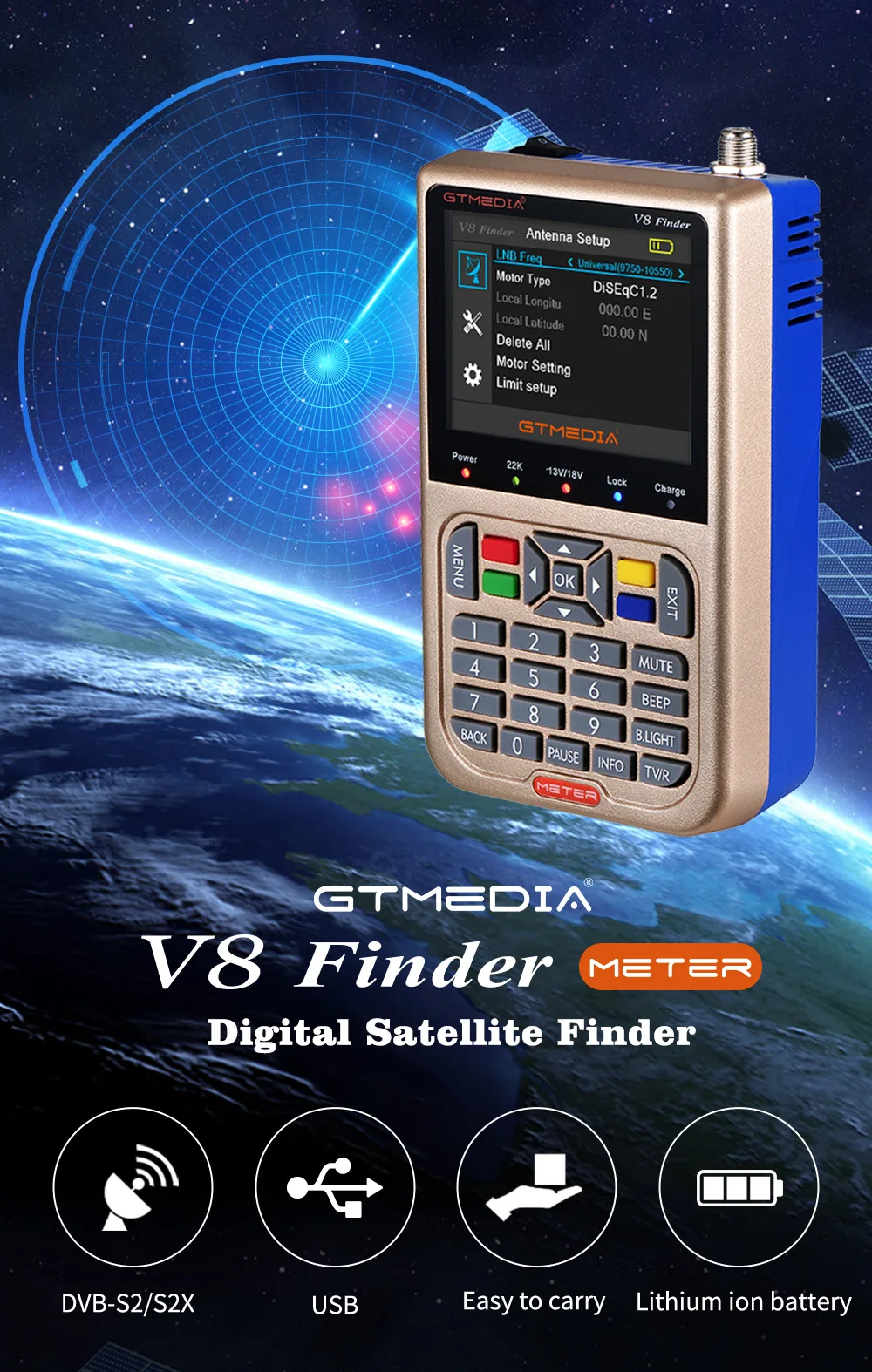 GTmedia V8 Finder Meter DVB-S2/S2X Satellite Meter Finder High Definition 1080P HD ACM Sat Finder Meter с аккумулятором 3000mA