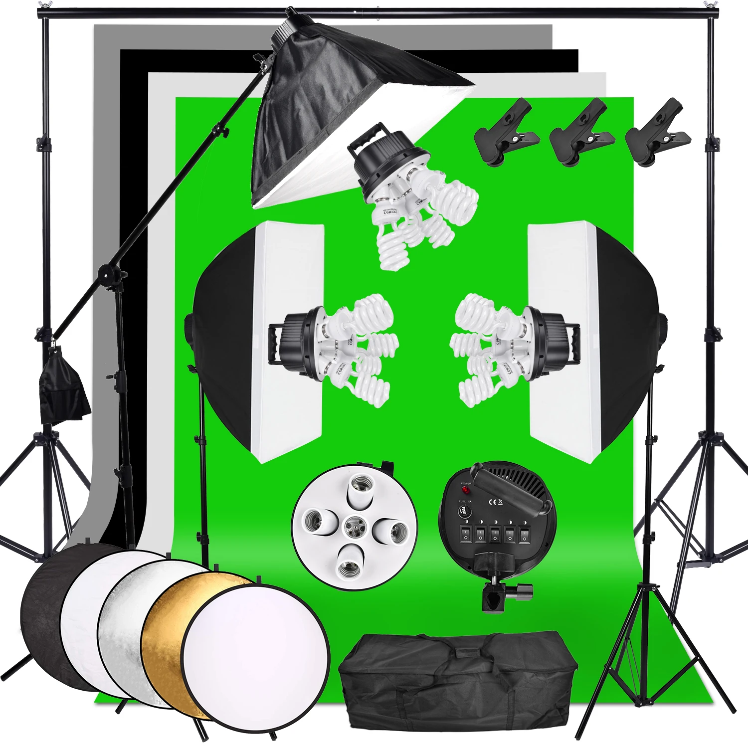 Фотовспышка ZUOCHEN 3375 Вт, софтбокс, лампочки, 4 фона, стойка для фона, 110 см, сумка-отражатель