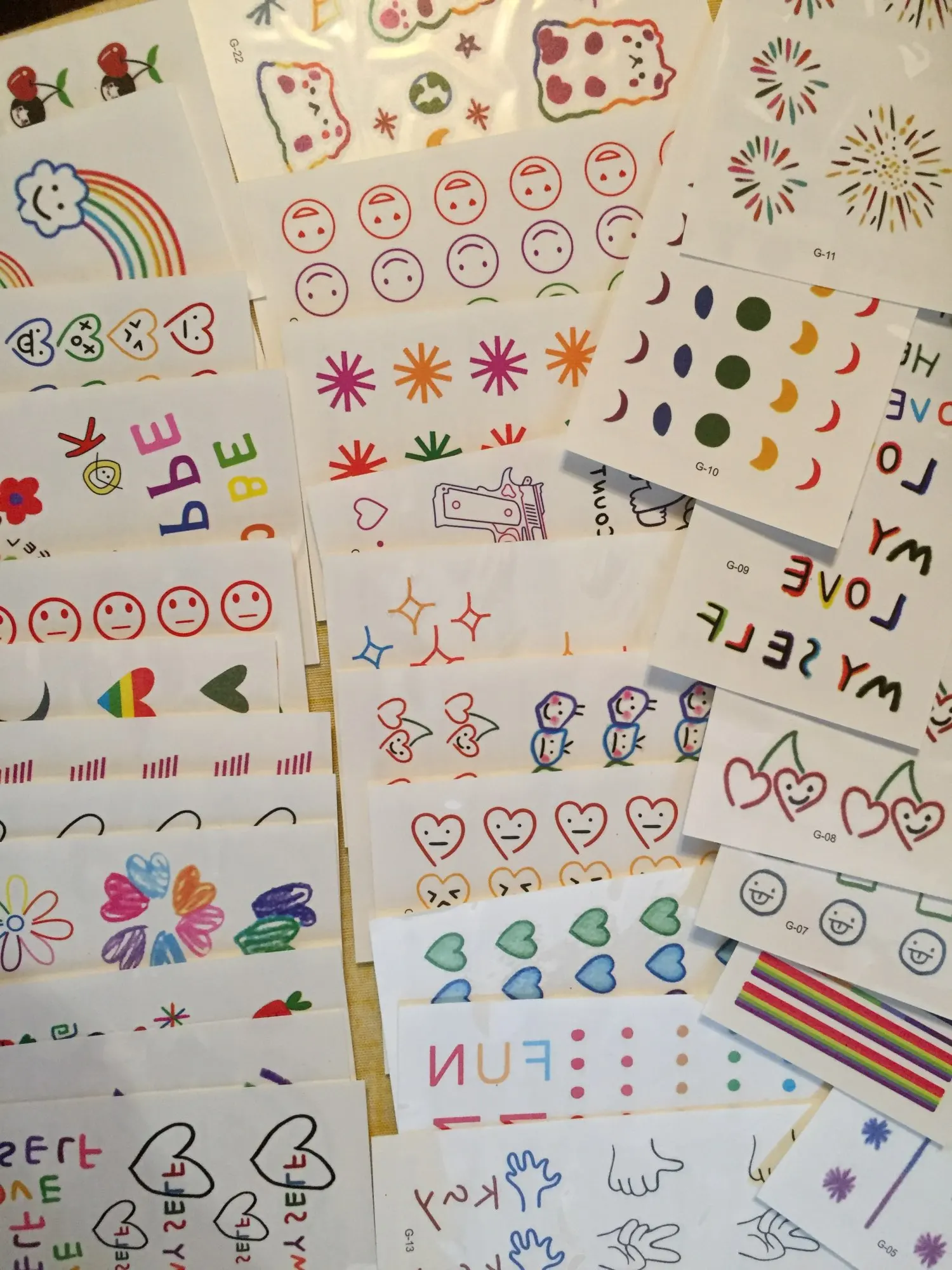 Яркие и красивые татушки ;D Пришли за 3 недели до смол. области. Мне очень понравились, держатся до 7 дней. Заказала еще радужных, но эти круче выглядят. Их много и на долго хватит. Переводятся на кожу быстро и без затруднений ~РЕКОМЕНДУЮ~