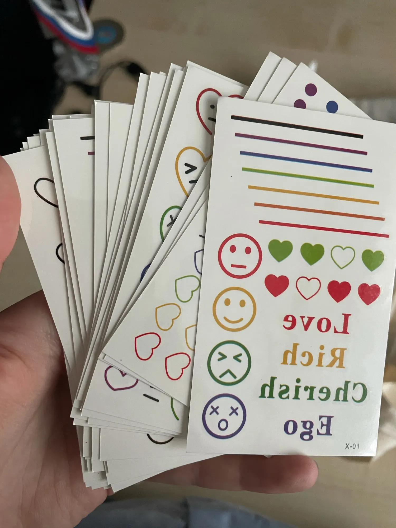 Пришли достаточно быстро, выглядят как переводные татуировки и быстро отходят, за такую цену очень хорошо