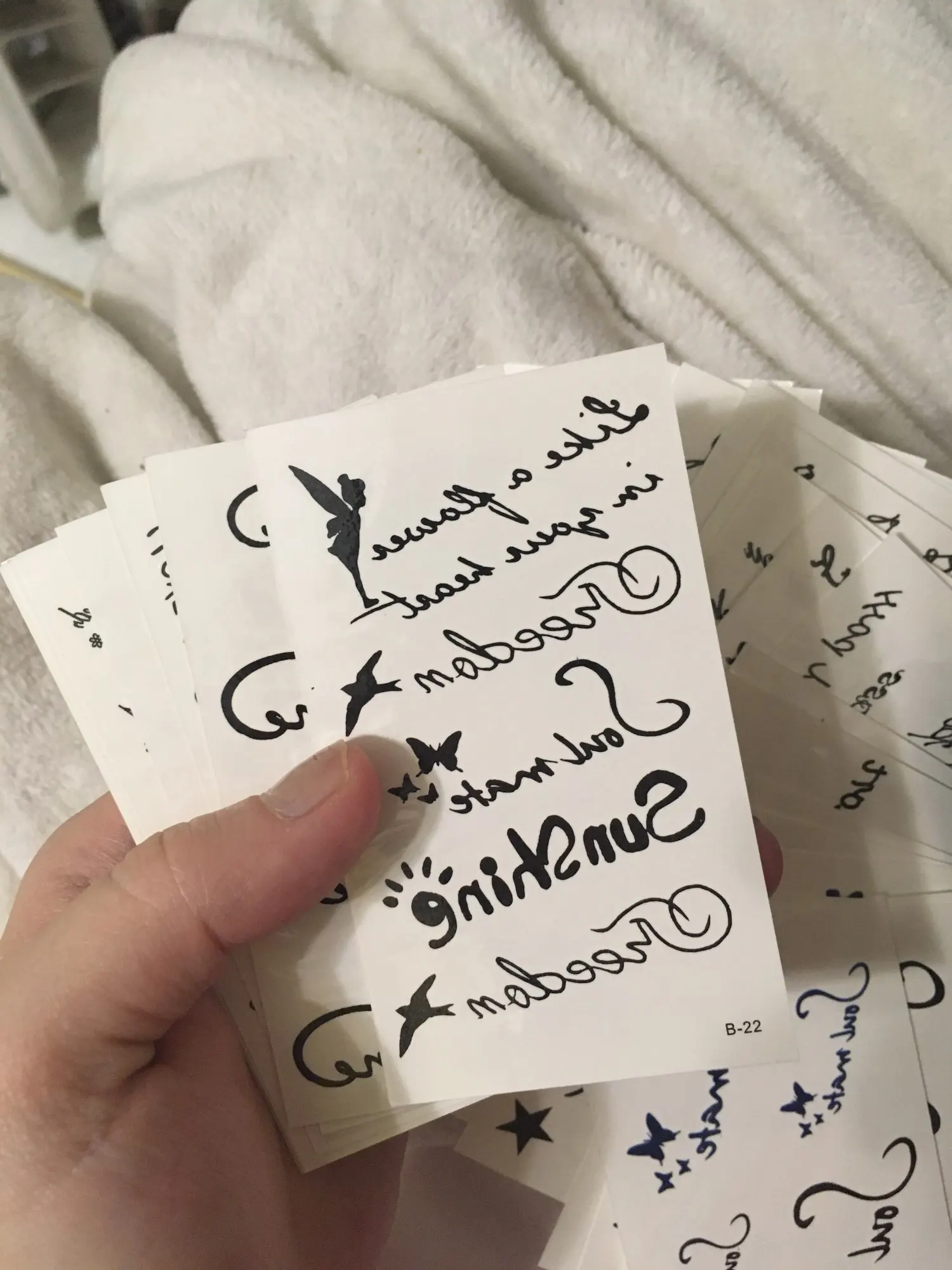Татуировки шикарный , советую продавца, пришло все быстро , тату в хорошем состоянии все 30 штук пришли <3