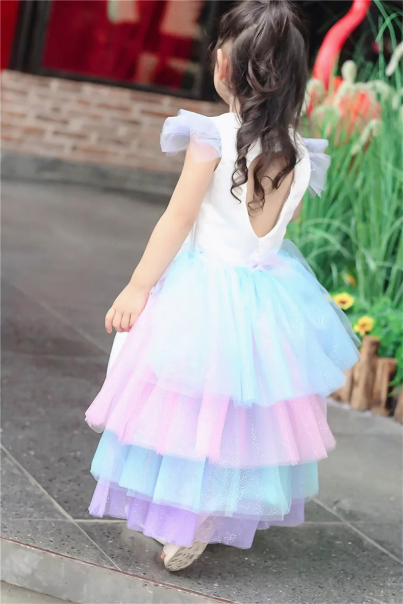 Платье принцессы с единорогом для девочек, длинное Радужное бальное...