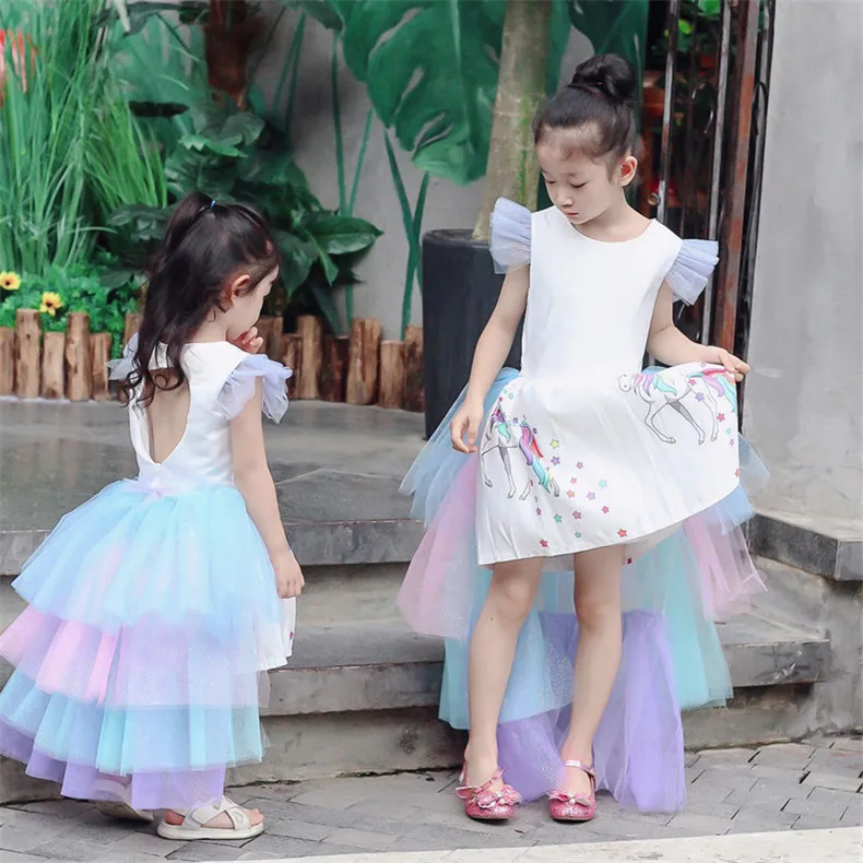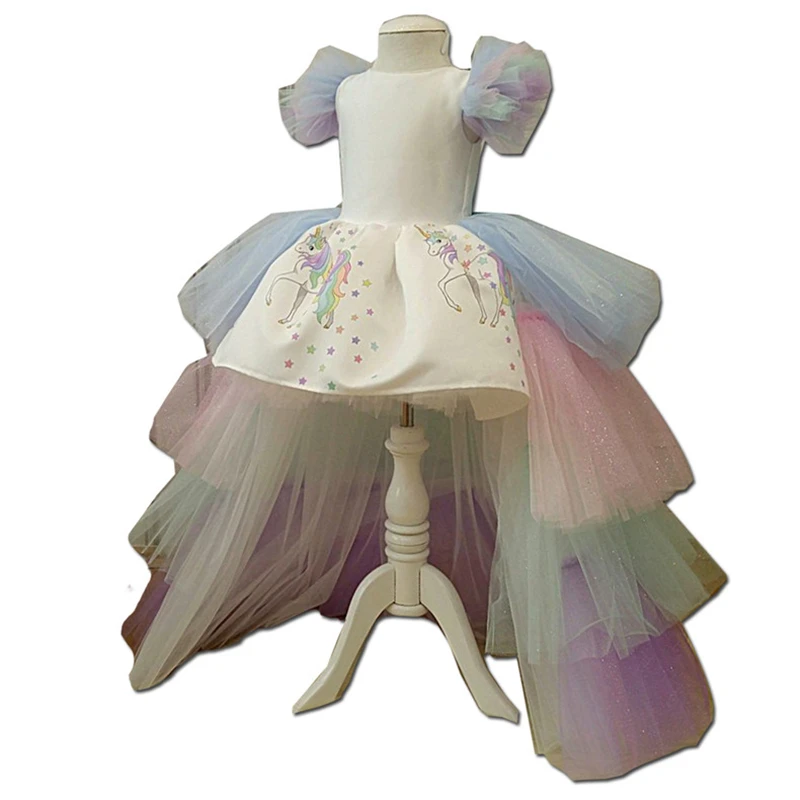 Платье с единорогом для девочек, радужные платья принцессы с пачкой...