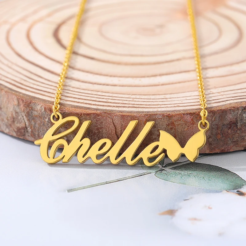 Ожерелья и подвески с изображением имени и милой бабочки, золотое ожерелье с именем из нержавеющей стали для женщин, бижутерия, женская бижутерия