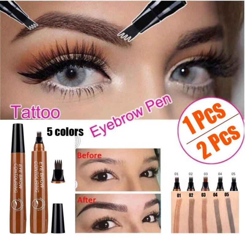Тату-ручка для бровей 3D с жидкими чернилами, 4 вилки, карандаш для...