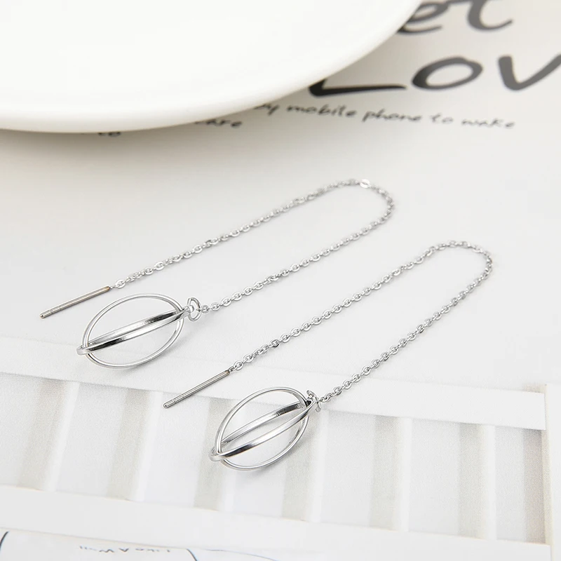 Серьги женские из нержавеющей стали, с длинной цепочкой