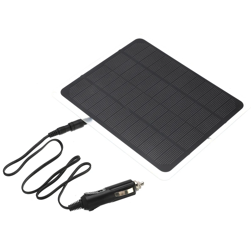 Особенности: -Он может быть использован как альтернативное зарядное устройство для автомобилей, грузовиков, караванов, лодок, мотоциклов, RV батарей или любых 12V свинцово-кислотных батарей. -Он водонепроницаемый и может быть помещен на открытом воздухе. -Встроенные диоды в зажиме типа «крокодил» помогают предотвратить обратную зарядку. -Вы можете установить этот товар в вашем автомобиле и продолжать зарядку в течение дня. -Обеспечивает 2 зажима аллигатора и зарядный кабель для всех видов оборудования, аварийных огней, рекламных огней, светофоров, электрических вентиляторов, солнечных водяных насосов, мотоциклов, лодок и т. д. Характеристики: -Мощность: 20 Вт -Панель: монокристаллический кремний -Размер: 215 мм * 185 мм * 2,5 мм -Напряжение холостого хода: 14V постоянного тока и USB 5,2 V Напряжение холостого хода: работающего на постоянном токе 12 В в & USB 5,0 V -Выходной ток: 600 мА (макс.) -USB2.0 выход: 5 В 600мА Посылка включает в себя: 1x солнечная панель 1x крокодил 1x прикуриватель