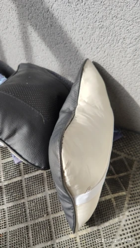 Искусственная кожа хорошего качества. Подушка мягкая, и я не заметил недостатков в швах. Это да, спина сделана из ткани. Они должны предупредить об этом. На фотографиях это не видно.