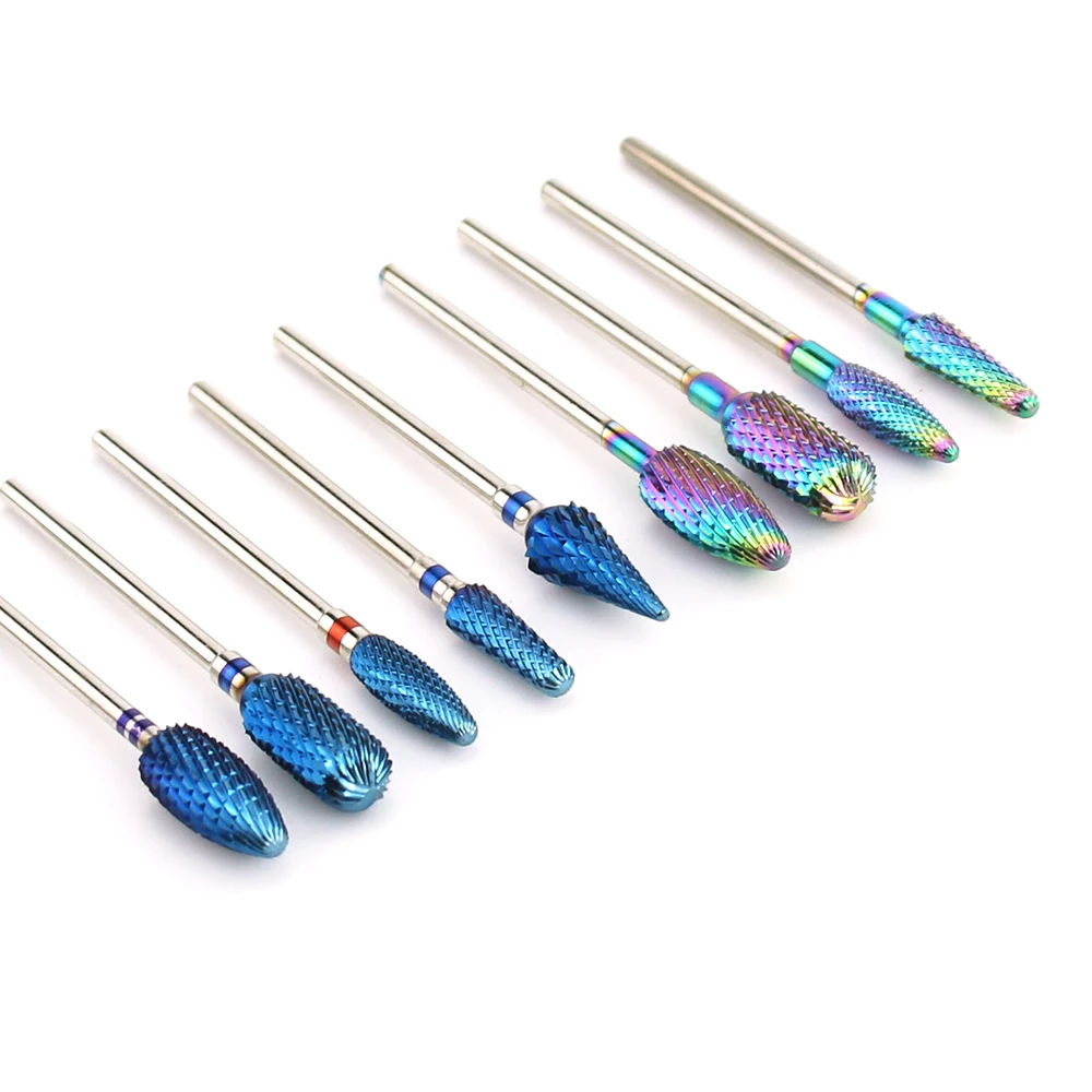 1 шт., фрезы из карбида синего радуги для ногтей, фрезы, вращающиеся фрезы, электрические пилочки для маникюра, инструменты для маникюра