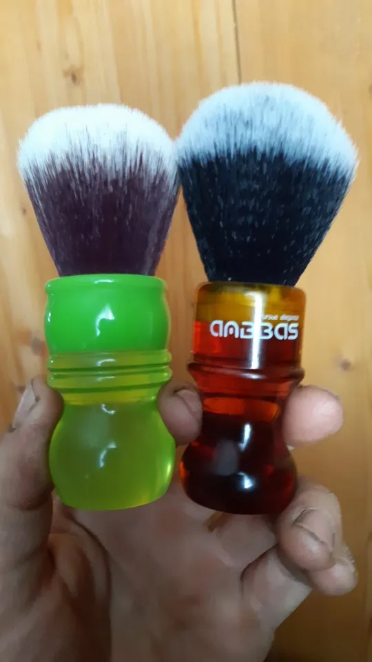 Большой , мягкий помазок.Из недостатков:просвечивает клей и нанесен он неравномерно...На зеленом от другого продавца это место матовое и клей невидно. Но помазок ХОРОШИЙ И КРАСИВЫЙ ...Денег на покупку нежалко , пусть простит меня продавец за критику но если делаеш ручку прозрачной то и относись к работе должным образом... Желаю всем здоровья .