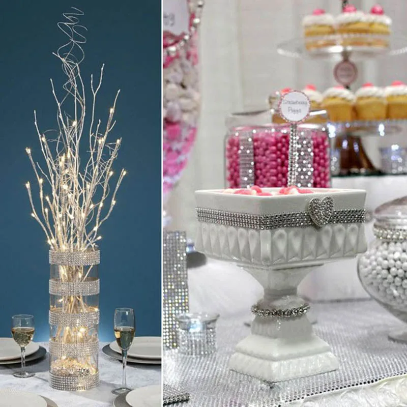 1 ярд 24 ряда, золотые и серебряные стразы, декоративная сетчатая отделка, полые ленты с имитацией кристаллов, для рукоделия, украшения для свадебной вечеринки