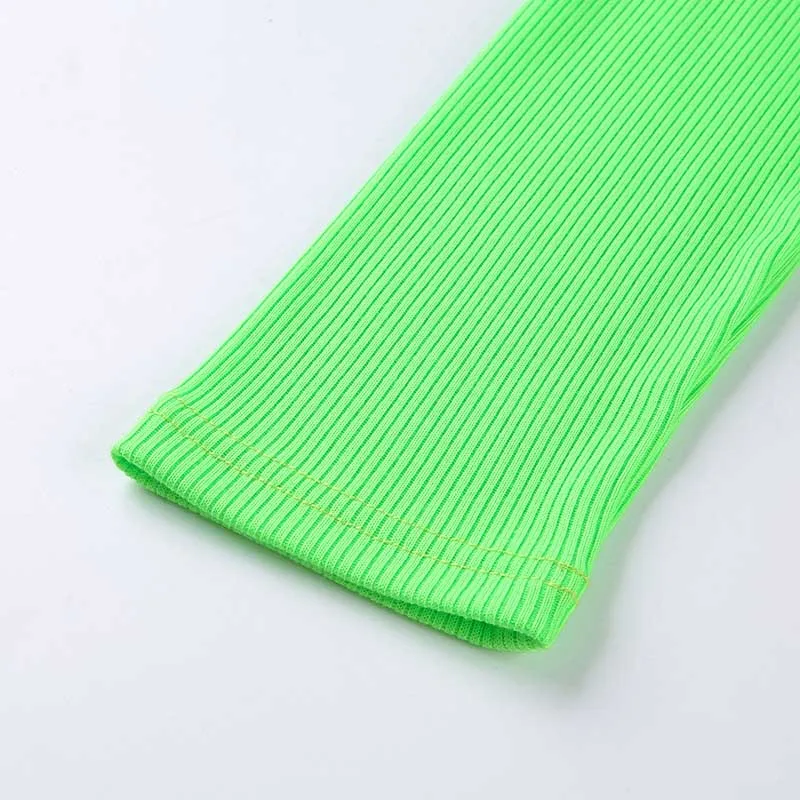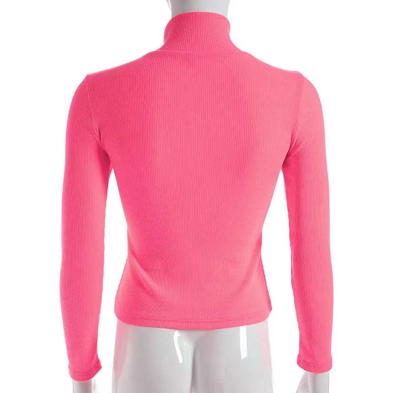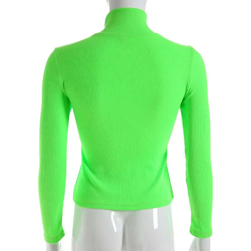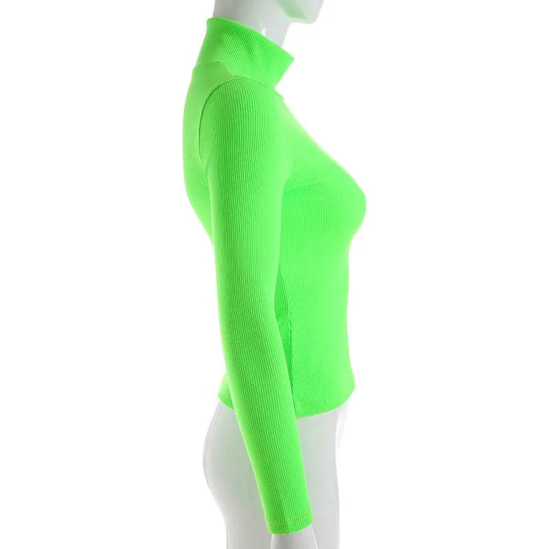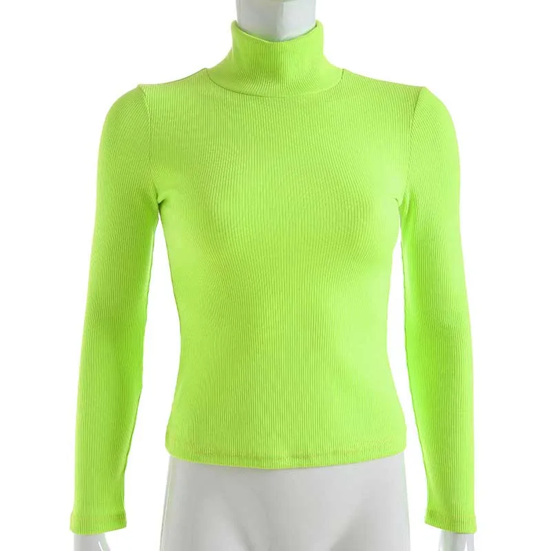 Женская водолазка с длинным рукавом, однотонная трикотажная футболка неонового цвета в рубчик, Осень-зима 2021