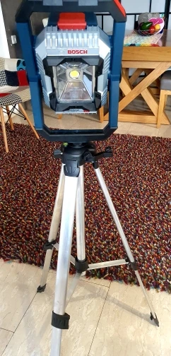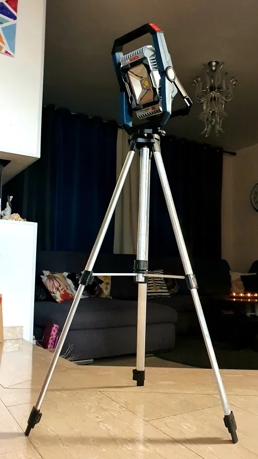неплохой штатив, тем более за эти деньги. брал для рабочего прожектора bosch GLI 18V-1900C. резьба подошла как родная. пришёл хорошо упакован. на максимальной высоте конечно последняя секция ножек тонкая, непрочная и не очень устойчивая. так-же механизм регулировки высоты не надёжный и долго не продержится. опять же, за эти деньги - рекомендую.