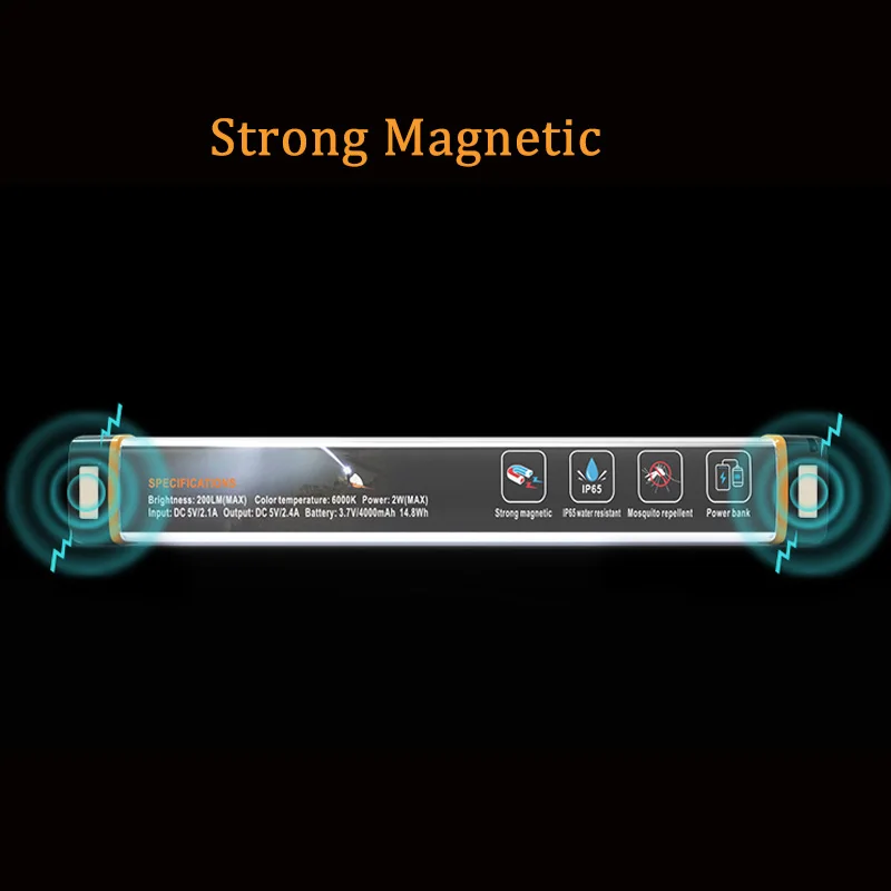 Водонепроницаемый Powerbank москитный Кемпинг Светильник USB перезаряжаемый портативный Bivvy Lite палка Сильный магнитный светодиодный светильник-вспышка факела