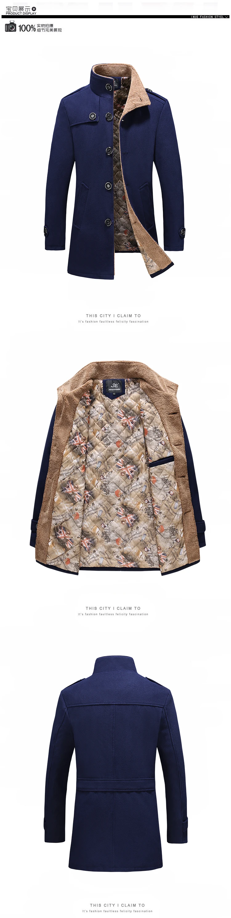 2020 зимняя мужская шерстяная ветровка модное пальто из смешанной т...