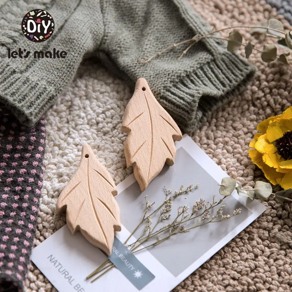 Деревянный Прорезыватель для зубов сделай сам, подвеска с листьями бука из натурального дерева для прорезывания зубов, аксессуары сделай сам, мобильные погремушки, детская игрушка