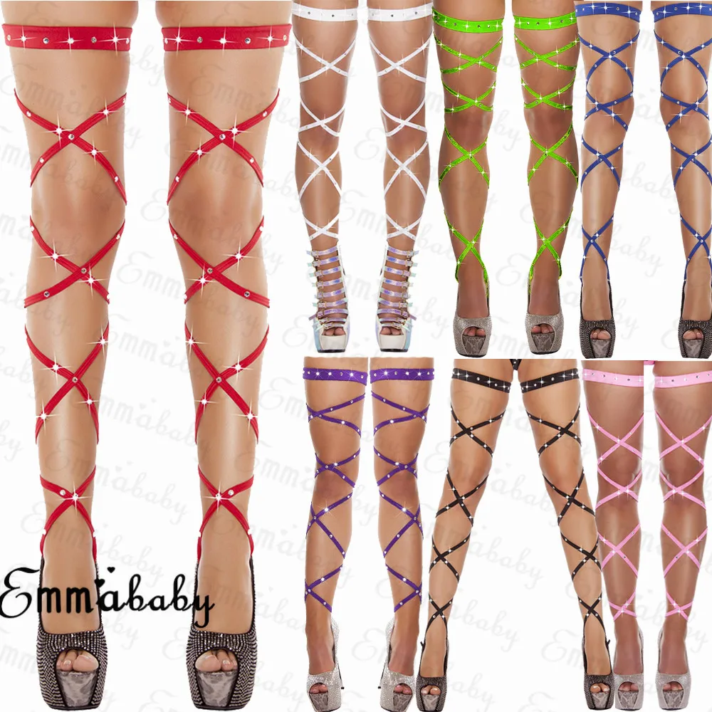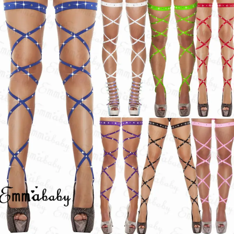 Новинка, женское нижнее белье, бандаж, блестящие ажурные чулки бедро, высокие Стразы