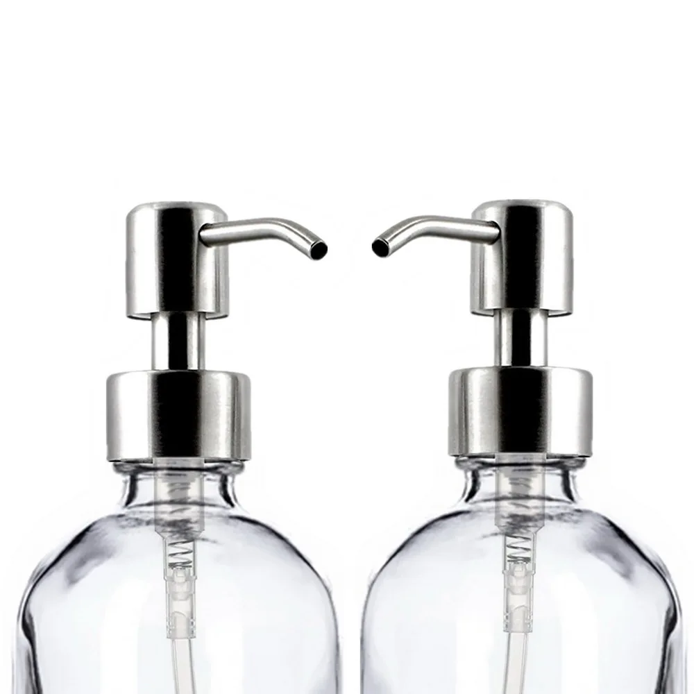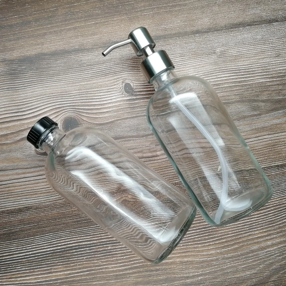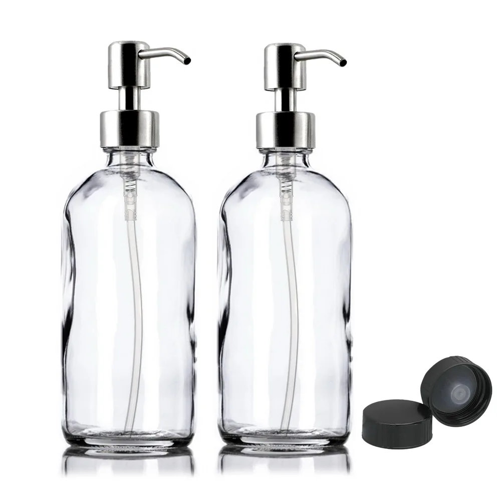 Супер набор из 2 прочных, многоразовых, 500 мл прозрачных стеклянных бутылок с насосами из нержавеющей стали отлично подходит для эфирных масел, лосьонов для крема, шампуня, жидкого мыла, геля для душа или других жидкостей.