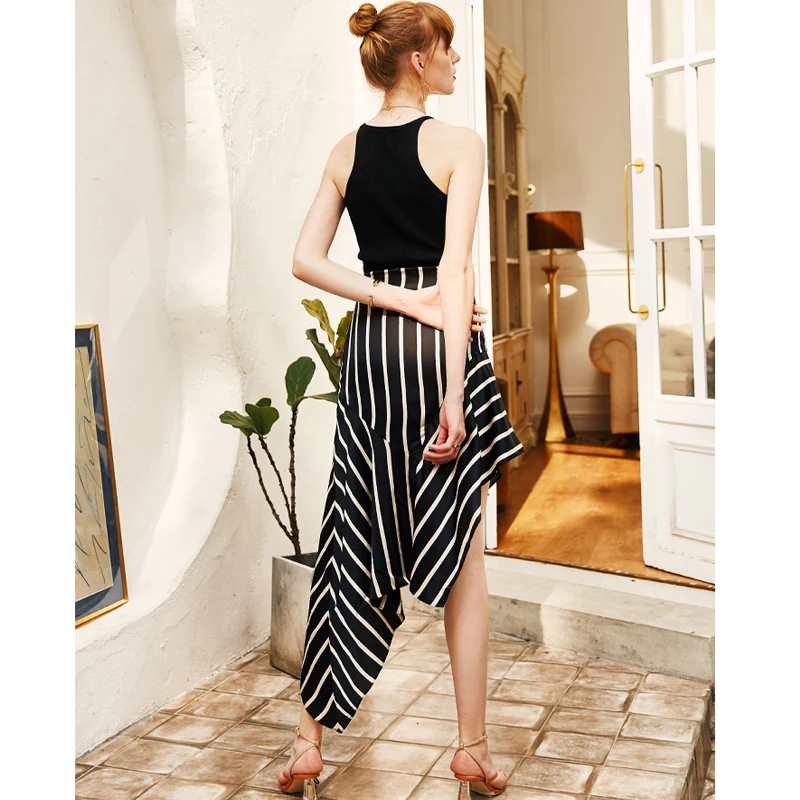 Атласная Юбка-миди AEL с запахом, асимметричная Женская юбка в черно-белую полоску с высокой талией, 2019