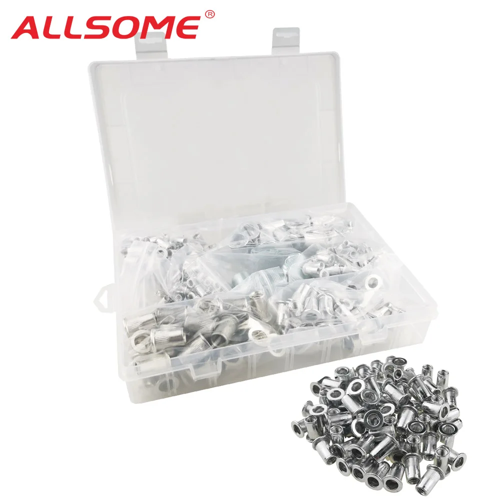 ALLSOME 300 шт., заклепка из алюминиевого сплава, плоская головка, заклепки с резьбой, вставка, гайка, M3 M4 M5 M6 M8 M10 M12 HT2773