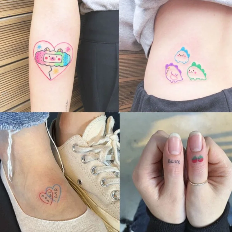 30 шт.компл. Временные татуировки Hyun A, милые наклейки и переводки, женские татуировки и боди-арт, водонепроницаемые искусственные татуировки, мультяшные рисунки