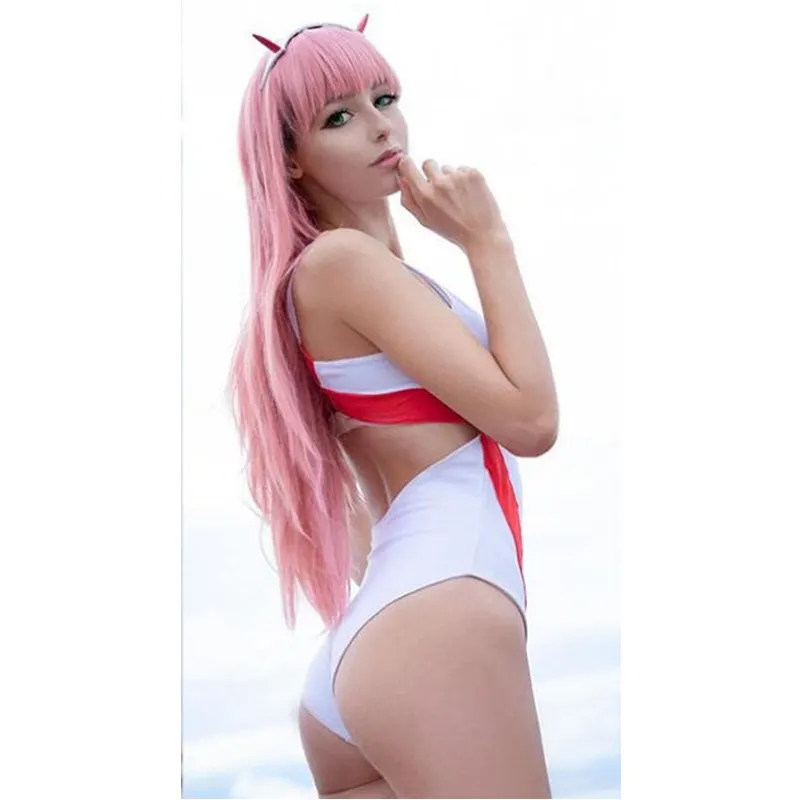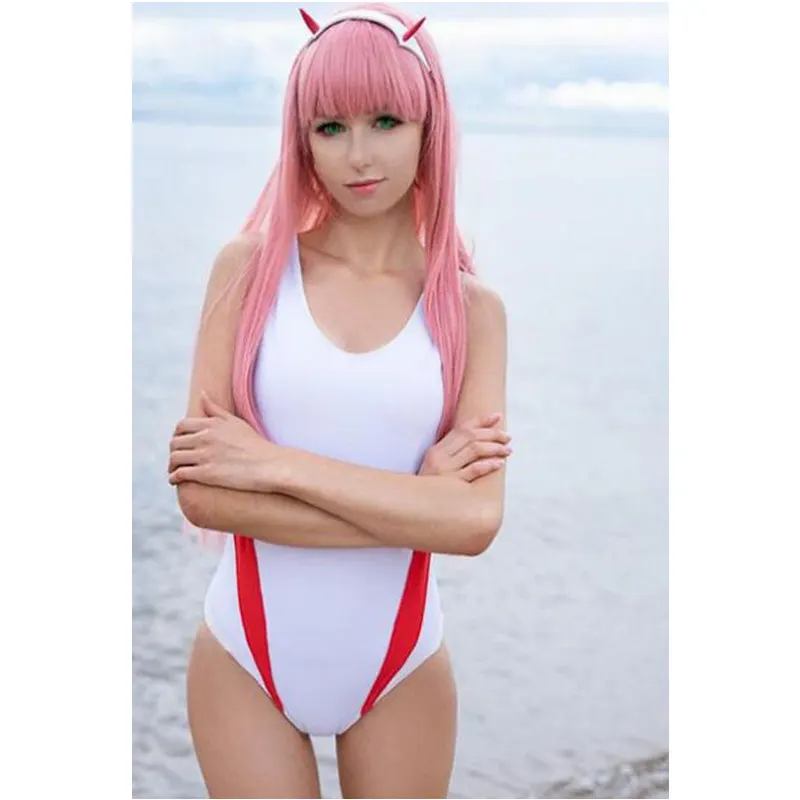 Женское Эротическое нижнее белье, костюм для косплея аниме DARLING in the FRANXX CODE:002 Zero Two, сексуальное боди для женщин, комбинезон, купальник, парики