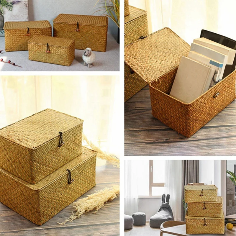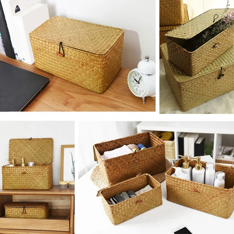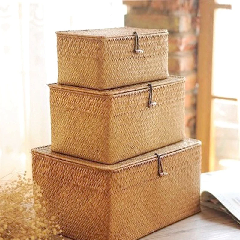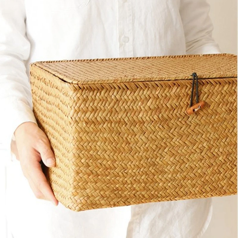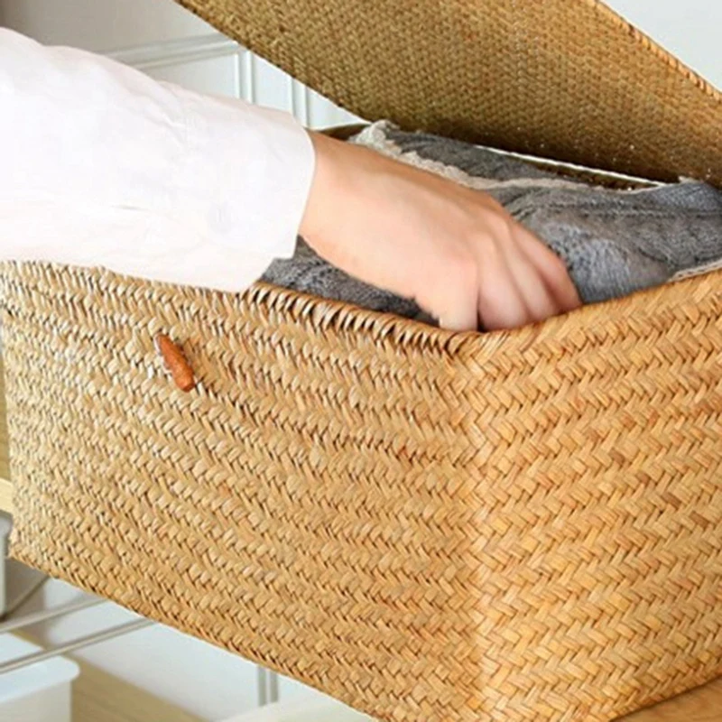 LIXF ручной работы, соломенная фотоплёнка с крышкой, органайзер для макияжа, коробка для хранения, корзины для белья из морских водорослей, ротанговая шкатулка для украшений