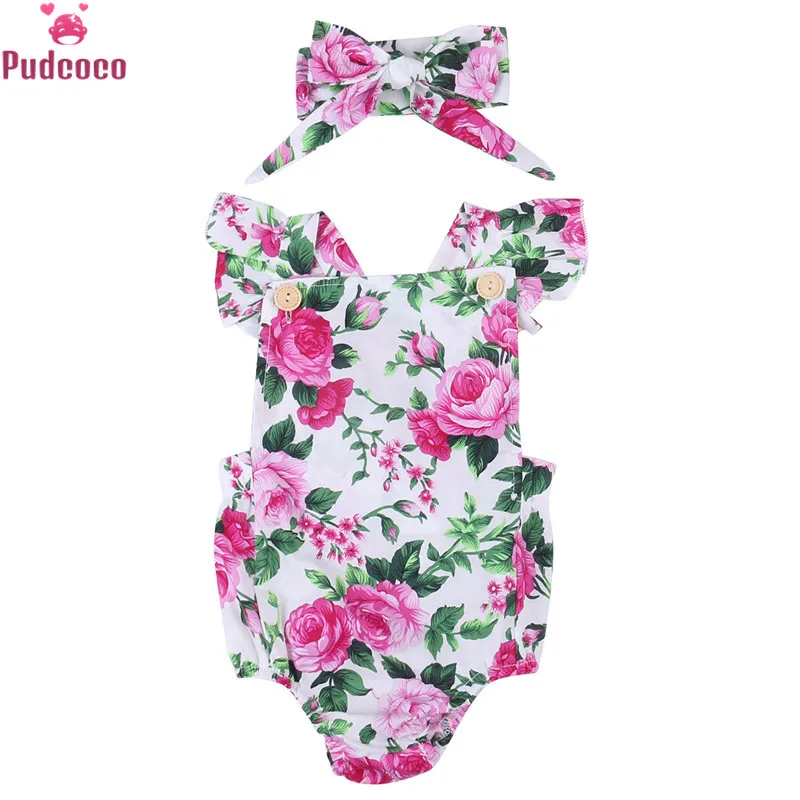 Милый комбинезон с цветочным принтом, 2 предмета, комбинезон на бретельках + костюм с повязкой на голову, пляжный костюм, комплект одежды на Рождество, 0-18 месяцев