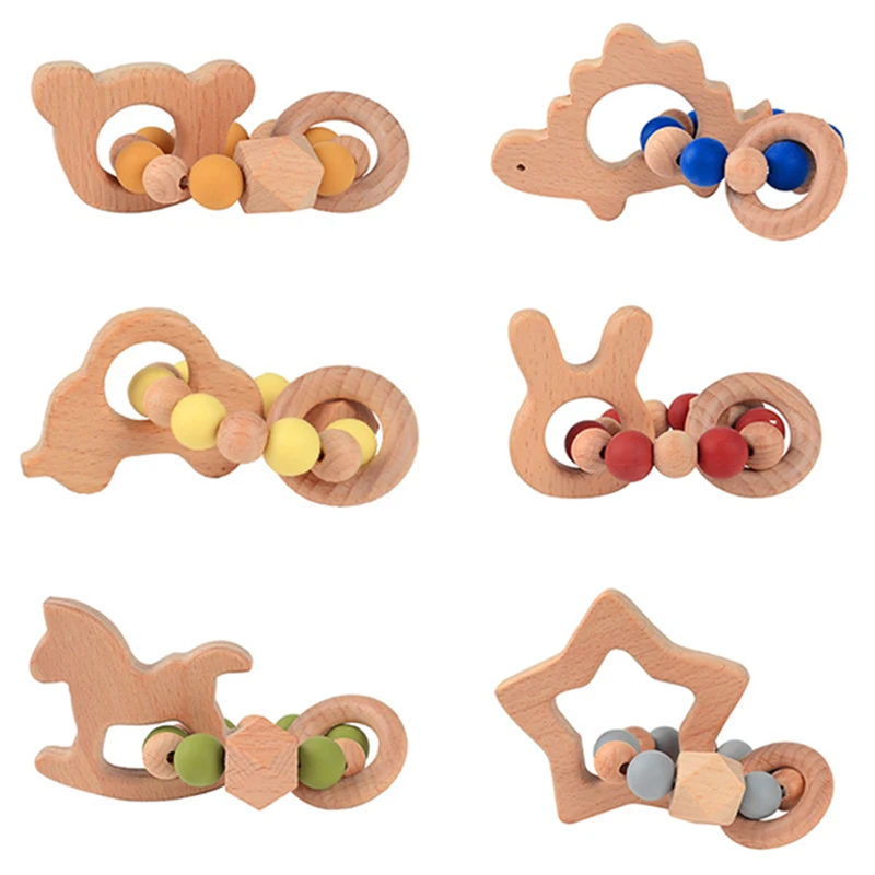Деревянный Прорезыватель для зубов, детский браслет в форме животного, ювелирное изделие для прорезывания зубов органический деревянный силиконовых бусин, детская коляска-погремушка, аксессуары, игрушка