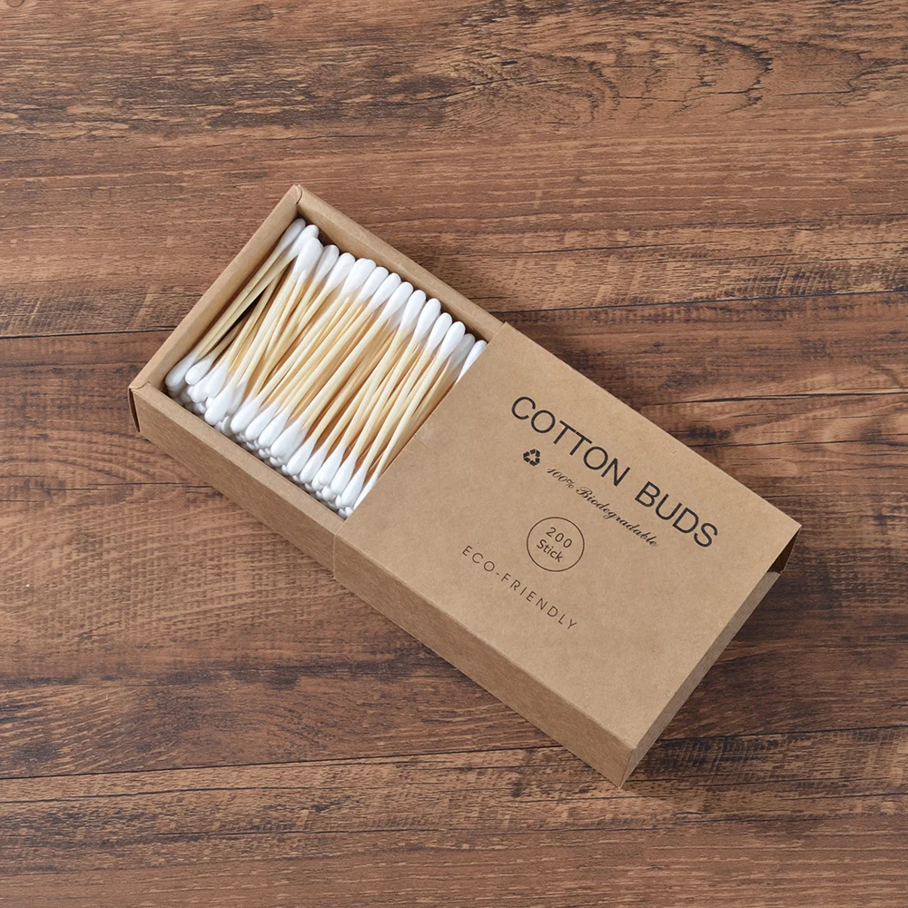 Ватные палочки с двойной головкой из бамбука без пластика, 200 шт.коркор., ватные палочки для взрослых для макияжа, деревянные палочки для носа, инструмент для ухода за здоровьем