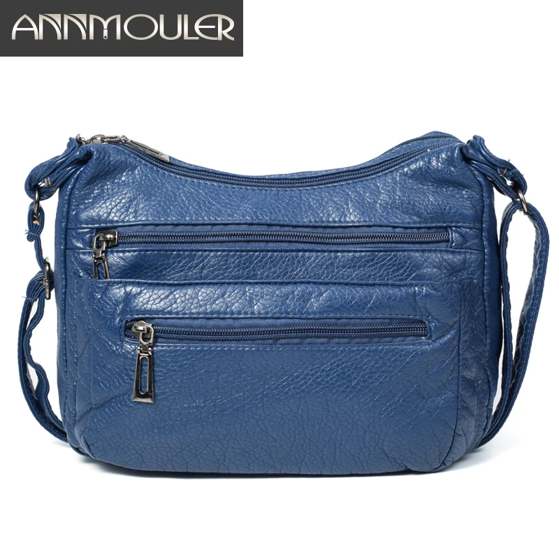 Сумка через плечо Annmouler женская, из искусственной кожи, синяя, с несколькими карманами