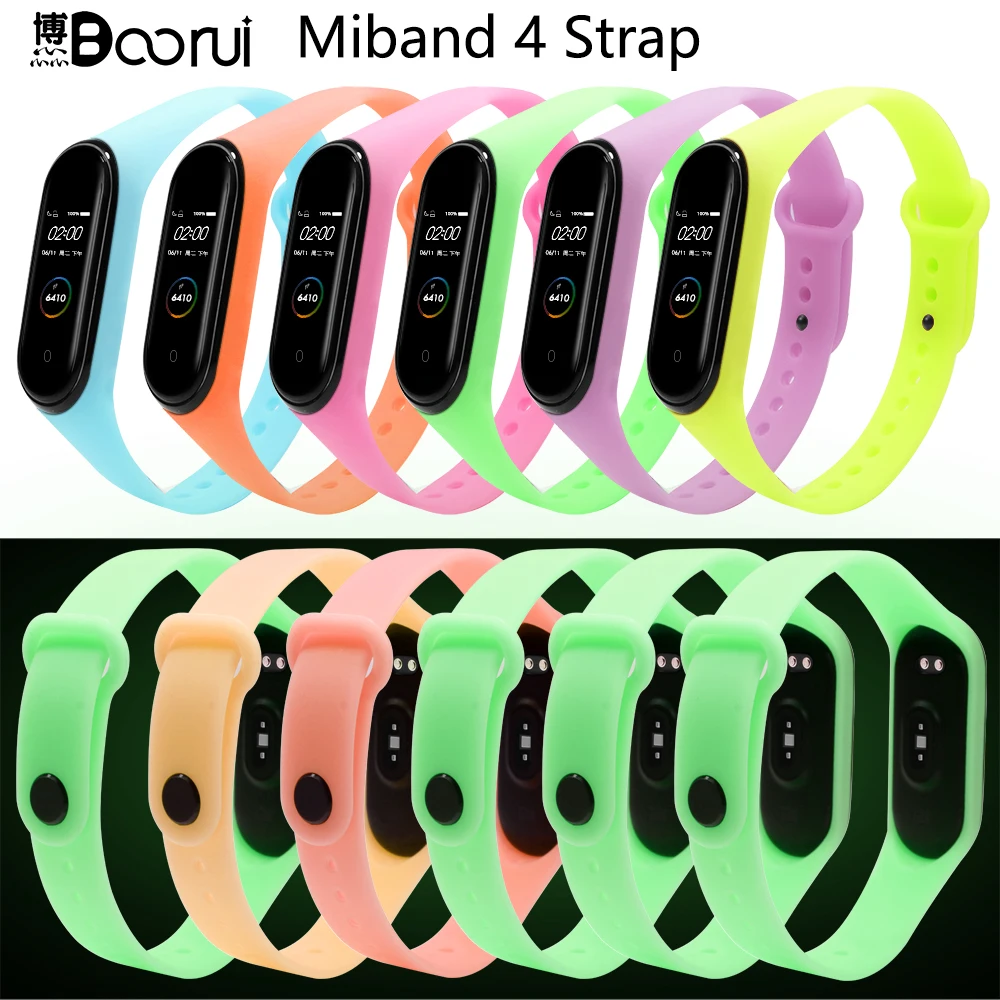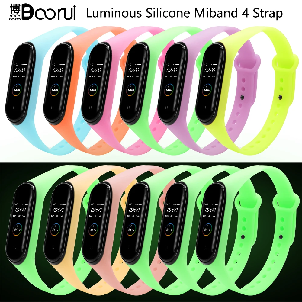 Светящиеся ремешки BOORUI для Mi band 3 4 5 6, сменные Ремешки для наручных часов mi4, ночник, аксессуары для смарт-браслета Xiaomi miband 3 4 5 6