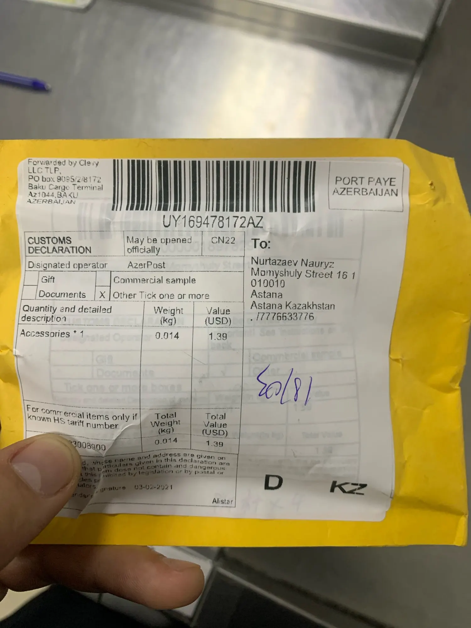 Страна: KZ Доставка: Cainiao Super Economy Global 26.10.2020