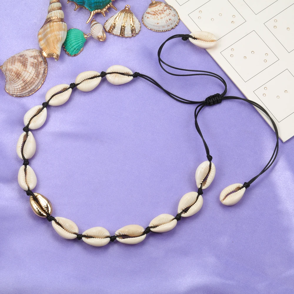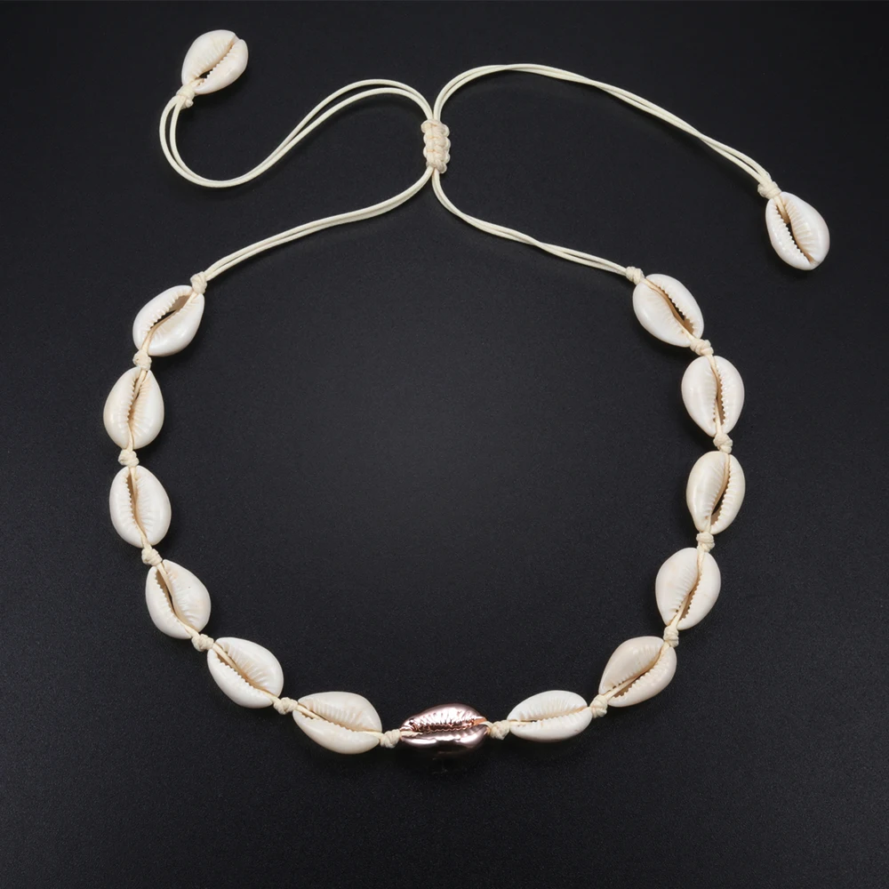 богемное натуральное ожерелье-чокер из раковины коровы для женщин, колье-чокер из розового золота и серебристого цвета, ожерелье с подвесным веревочным воротником, модное летнее пляжное ювелирное изделие, дропшиппинг