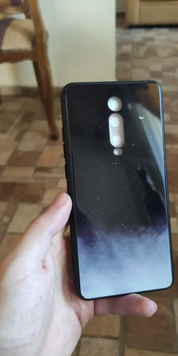 The case has the same colors as in the picture but is less shiny than shown. It's a hard case, it doesn't bend but it isn't glass either which is good, otherwise glass breaks easily. It fits my phone perfectly (Mi 9T Pro/K20 Pro). The power and volume buttons are really easy to use, very clickable and it doesn't get in the way of the phone's charger. I can easily use the phone gestures with the case, it doesn't get in the way. The case came in a package to prevent from breaking, very safe. Took a few days over two months to reach me.